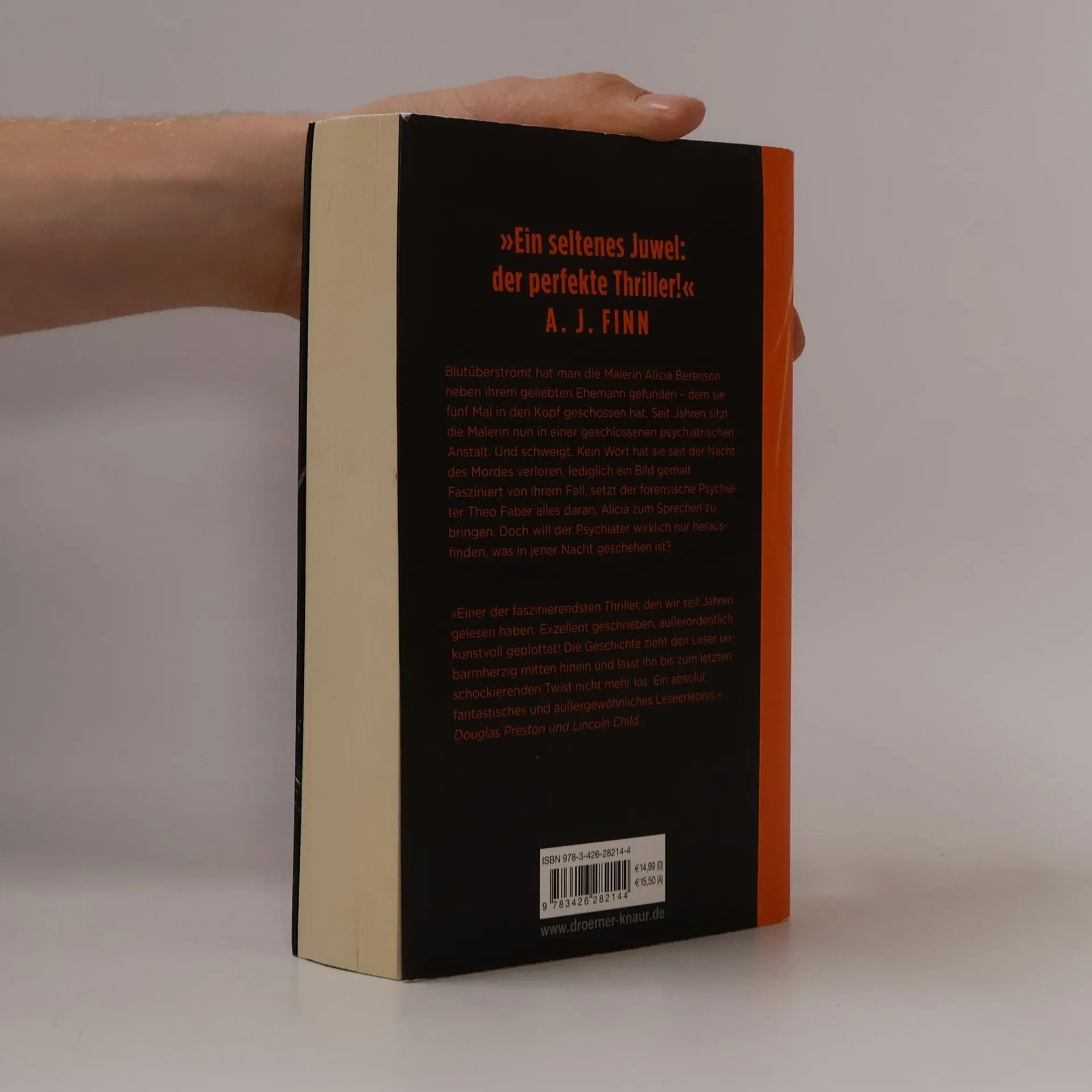 Der internationale Spannungs-Bestseller des Jahres 2019 – Nummer 1 der New York Times-Bestsellerliste! „Ein seltenes Juwel: der perfekte Thriller.“ A. J. Finn. Die Malerin Alicia Berenson wurde blutüberströmt neben ihrem Ehemann gefunden, den sie fünf Mal erschoss. Seit sieben Jahren sitzt sie in einer psychiatrischen Anstalt und schweigt. Ein einziges Bild hat sie seit der Nacht des Mordes gemalt: Es zeigt sie als Alkestis, die in der griechischen Mythologie ihr Leben für ihren Mann opfert. Der forensische Psychiater Theo Faber ist fasziniert von ihrem Fall und setzt alles daran, Alicia zum Sprechen zu bringen. Doch verfolgt er wirklich nur das Ziel, das Geschehene zu ergründen? Der Brite Alex Michaelides, erfolgreicher Drehbuchautor, hat mit diesem psychologischen Thriller ein Meisterwerk geschaffen, das Fans von „The Woman in the Window“ und „Gone Girl“ fesseln wird. Hochkarätige Autoren wie A. J. Finn und David Baldacci sind sich einig: Hier kommt die Thriller-Entdeckung des Jahres 2019. „Ein exzellenter, psychologischer Thriller: Elegant, clever und mit einer überraschenden Wendung.“ JOANNE HARRIS. „Absolut brillant ... das Ende war unvorhersehbar.“ STEPHEN FRY. „Intelligentes, durchdachtes Storytelling plus Hochspannung – ein hervorragender Thriller.“ LEE CHILD.