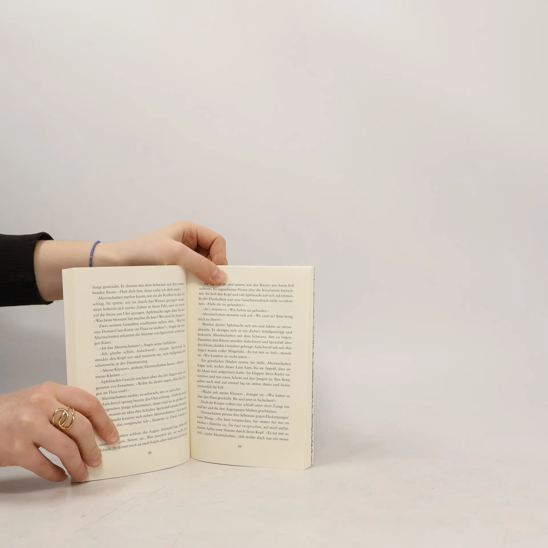 Die DonnerClan-Katze Ahornschatten verstößt gegen das Gesetz der Krieger, als sie sich in Apfelnacht aus dem verfeindeten FlussClan verliebt und Junge bekommt. Schon bald fliegen Ahornschattens Lügen auf, und sie und ihre Jungen werden gnadenlos verstoßen. Auf der Flucht geraten die Katzen in einen reißenden Fluss und die Jungen ertrinken. Als Apfelnacht sie als seine Gefährtin verleugnet, schwört Ahornschatten den Clans ewige Vergeltung.