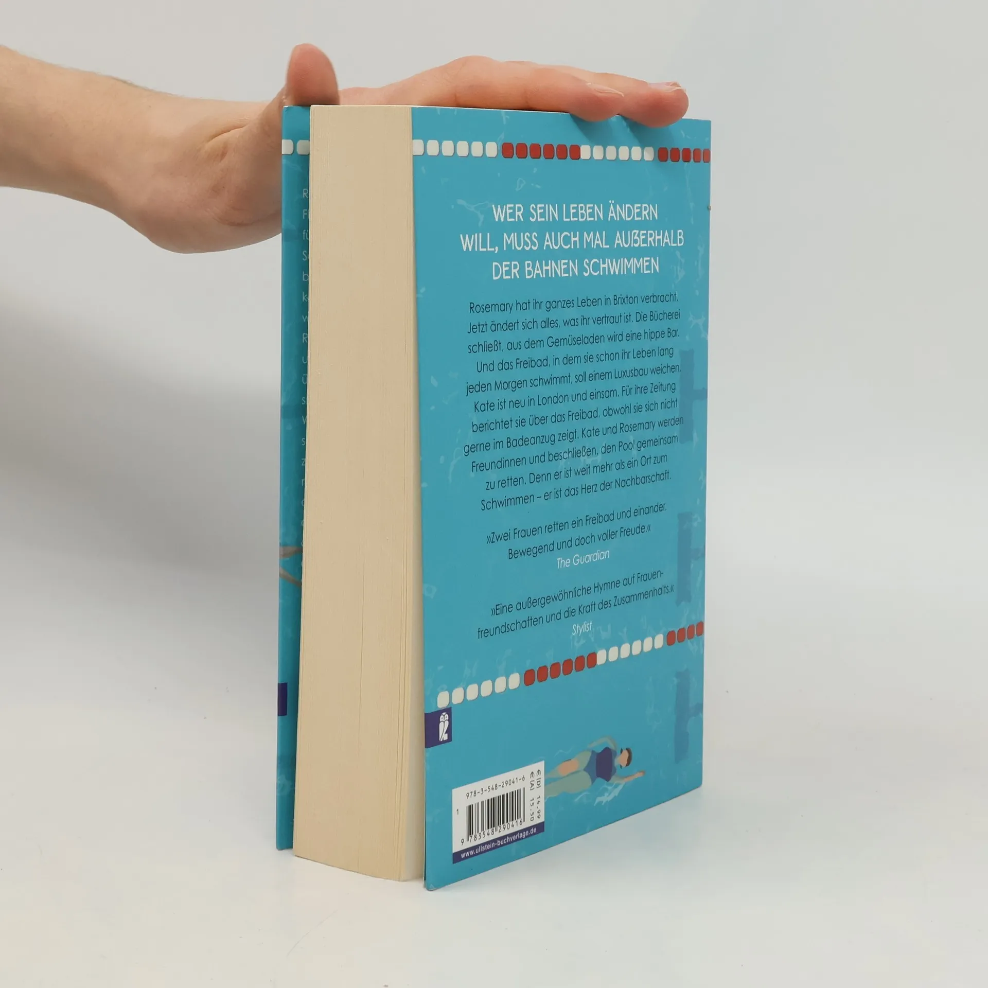 Wer sein Leben ändern will, muss auch mal außerhalb der Bahnen schwimmen Rosemary hat ihr ganzes Leben in Brixton verbracht. Jetzt ändert sich alles, was ihr vertraut ist. Die Bücherei, in der sie gearbeitet hat, schließt. Aus dem Gemüseladen ist eine hippe Bar geworden. Ihr geliebter Mann George ist gestorben. Und das Freibad, in dem sie seit über 60 Jahren jeden Morgen schwimmt, soll Eigentumswohnungen weichen. Kate fühlt sich einsam in London. Als sie über Rosemarys Freibad für die Zeitung schreiben soll, öffnet sich ihr eine neue Welt. Kate zeigt sich nicht gerne im Badeanzug, aber mit Rosemarys Hilfe überwindet sie ihre Schüchternheit. Kate und Rosemary werden Freundinnen und beschließen, gemeinsam das Freibad zu retten. Denn der Pool ist mehr als ein Ort zum Schwimmen – er ist das Herz der Nachbarschaft. „Mit diesen Frauen möchten wir befreundet sein.“ Grazia „Diese Story stimmt fröhlich“ Bella „Zwei Frauen retten ein Freibad und einander. Bewegend und doch voller Freude.“ The Guardian „Eine außergewöhnliche Hymne auf Frauenfreundschaften und die Kraft des Zusammenhalts“. Stylist
