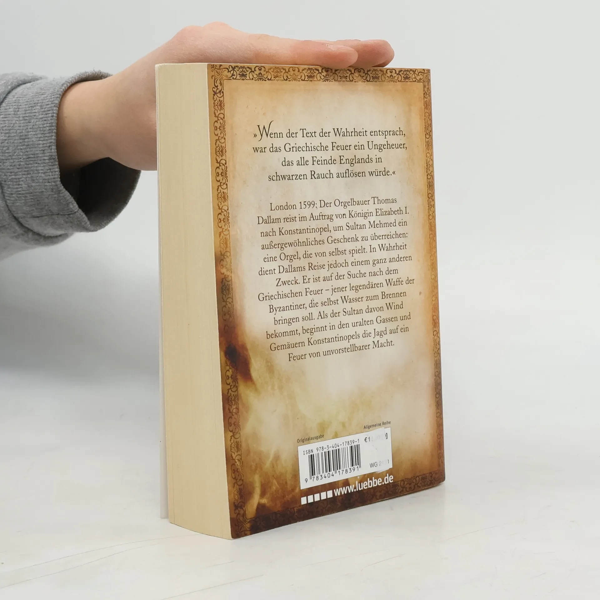 London 1599: Der Orgelbauer Thomas Dallam reist im Auftrag von Königin Elizabeth I. nach Konstantinopel, um Sultan Mehmed ein außergewöhnliches Geschenk zu überreichen: eine Orgel, die von selbst spielt. In Wahrheit dient Dallams Reise jedoch einem ganz anderen Zweck. Er ist auf der Suche nach dem Griechischen Feuer - jener legendären Waffe der Byzantiner, die selbst Wasser zum Brennen bringen soll. Als der Sultan davon Wind bekommt, beginnt in den uralten Gassen und Gemäuern Konstantinopels die Jagd auf ein Feuer von unvorstellbarer Macht.
