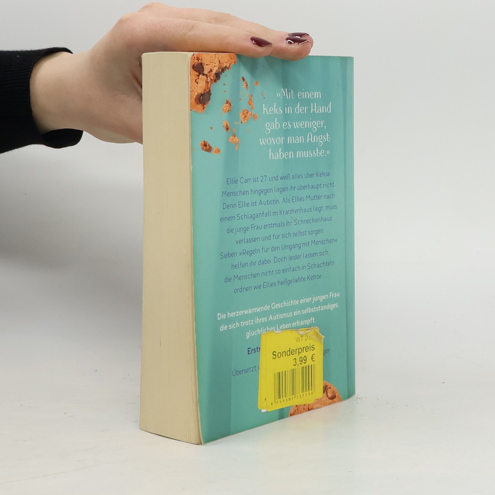 Ellie Carr ist siebenundzwanzig und weiß alles über Kekse. Menschen hingegen liegen ihr überhaupt nicht. Denn Ellie ist Autistin. Als Ellies Mutter nach einem Schlaganfall im Krankenhaus liegt, muss die junge Frau erstmals ihr Schneckenhaus verlassen und selbst für sich sorgen. Sieben selbsterstellte »Regeln für den Umgang mit Menschen« helfen ihr dabei. Doch leider lassen sich die Menschen nicht so einfach in Schachteln ordnen wie Ellies heißgeliebte Kekse ...Bereits erschienen unter dem Titel »Wie Ellie Carr zu leben lernt«.
