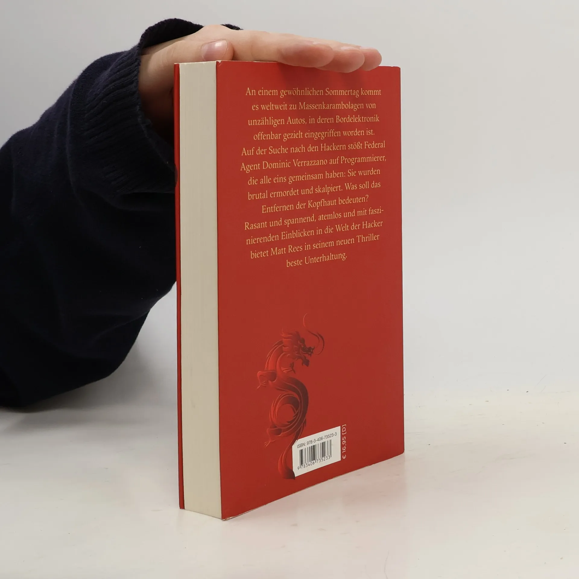 An einem gewöhnlichen Sommertag kommt es weltweit zu Massenkarambolagen von unzähligen Autos, in deren Bordelektronik offenbar gezielt eingegriffen worden ist. Die Zahl der Toten und Verletzten ist enorm. Federal Agent Dominic Verrazzano wird nicht nur Zeuge der Ereignisse - bald wird er herausfinden, dass hinter der Attacke eine finstere Verschwörung steckt. Auf der Suche nach den Hackern stößt Verrazzano auf Programmierer, die alle eins gemeinsam haben: Sie wurden brutal ermordet und skalpiert. Was soll das Entfernen der Kopfhaut bedeuten? Die Spur führt Verrazzano nach Europa, nach Deutschland, nach Rüsselsheim. Und zugleich ins Zentrum eines gefährlichen Handelskriegs, ins dunkle Herz Amerikas. Auf Mallorca schließlich kommt es zum furiosen Showdown… Rasant und spannend, atemlos und mit faszinierenden Einblicken in die Welt der Hacker bietet Matt Rees in seinem neuen Thriller beste Unterhaltung.