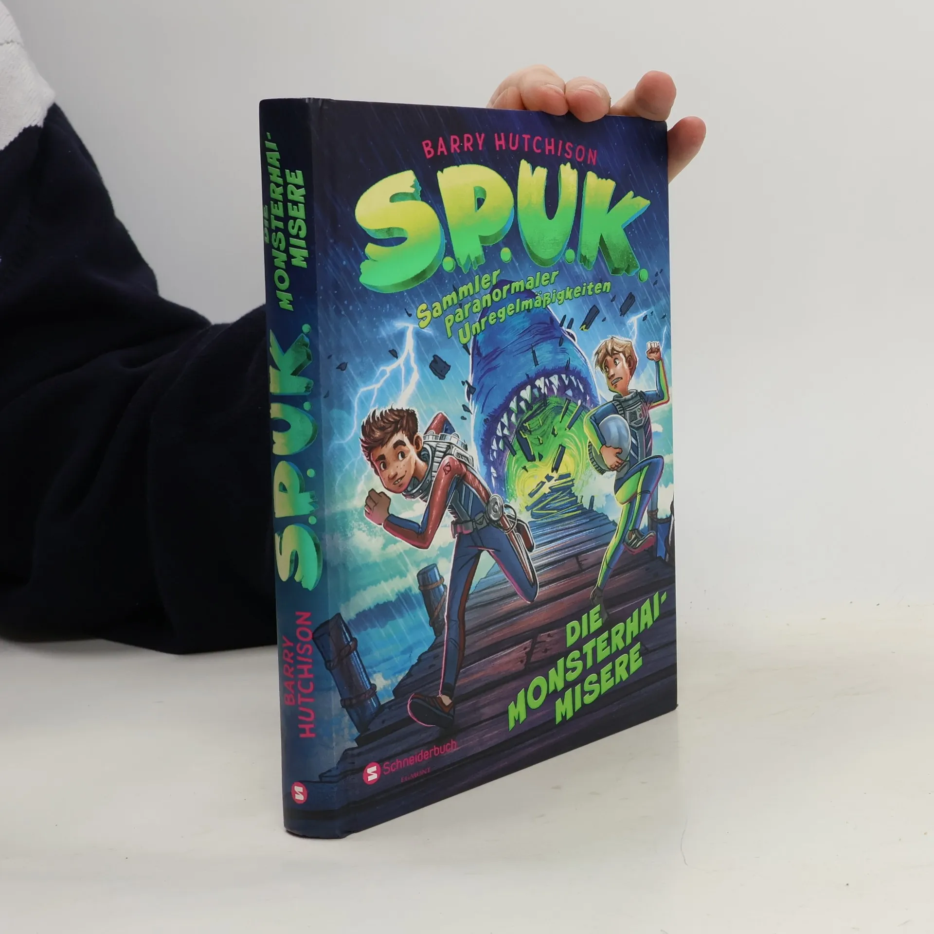 In einer finsteren Nacht stehen Denzel und Schmitti am Wasser auf einer New Yorker Landungsbrücke, als diese plötzlich zu beben beginnt … Ehe es die frischgebackenen S.P.U.K.-Geisterjäger richtig begreifen, splittert schon das Holz unter ihren Füßen und eine gigantische Haifischflosse steuert direkt auf sie zu! Doch die Flucht vor dem grauenvollen Monsterhai ist nicht die einzige Herausforderung, der sich die beiden zusammen mit ihren amerikanischen Kollegen Weinberg und Martinez stellen müssen. In der von einem gigantischen Meer aus grünlich waberndem Nebel überzogenen Millionenstadt bekommen es die Sammler paranormaler Unregelmäßigkeiten mit zahllosen anderen Geistererscheinungen und sogar dem leibhaftigen King Kong zu tun.