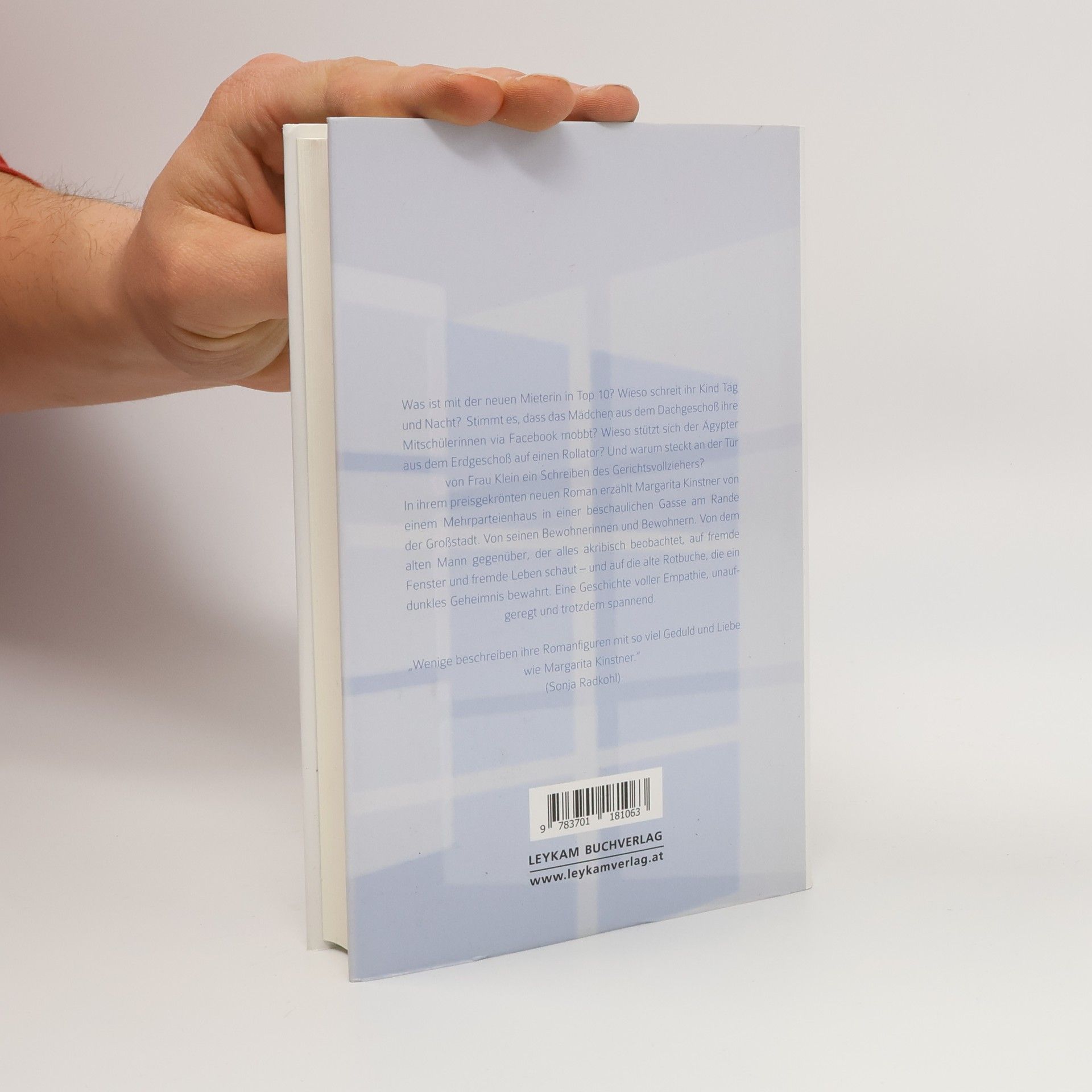 Was ist mit der neuen Mieterin in Top 10? Wieso schreit ihr Kind Tag und Nacht? Stimmt es, dass das Mädchen aus dem Dachgeschoß ihre Mitschülerinnen via Facebook mobbt? Wieso stützt sich der Ägypter aus dem Erdgeschoß auf einen Rollator? Und warum steckt an der Tür von Frau Klein ein Schreiben des Gerichtsvollziehers? In ihrem preisgekrönten neuen Roman erzählt Margarita Kinstner von einem Mehrparteienhaus in einer beschaulichen Gasse am Rande der Großstadt. Von seinen Bewohnerinnen und Bewohnern. Von dem alten Mann gegenüber, der alles akribisch beobachtet, auf fremde Fenster und fremde Leben schaut – und auf die alte Rotbuche, die ein dunkles Geheimnis bewahrt. Eine Geschichte voller Empathie, unaufgeregt und trotzdem spannend. „Wenige beschreiben ihre Romanfi guren mit so viel Geduld und Liebe wie Margarita Kinstner.“ (Sonja Radkohl)