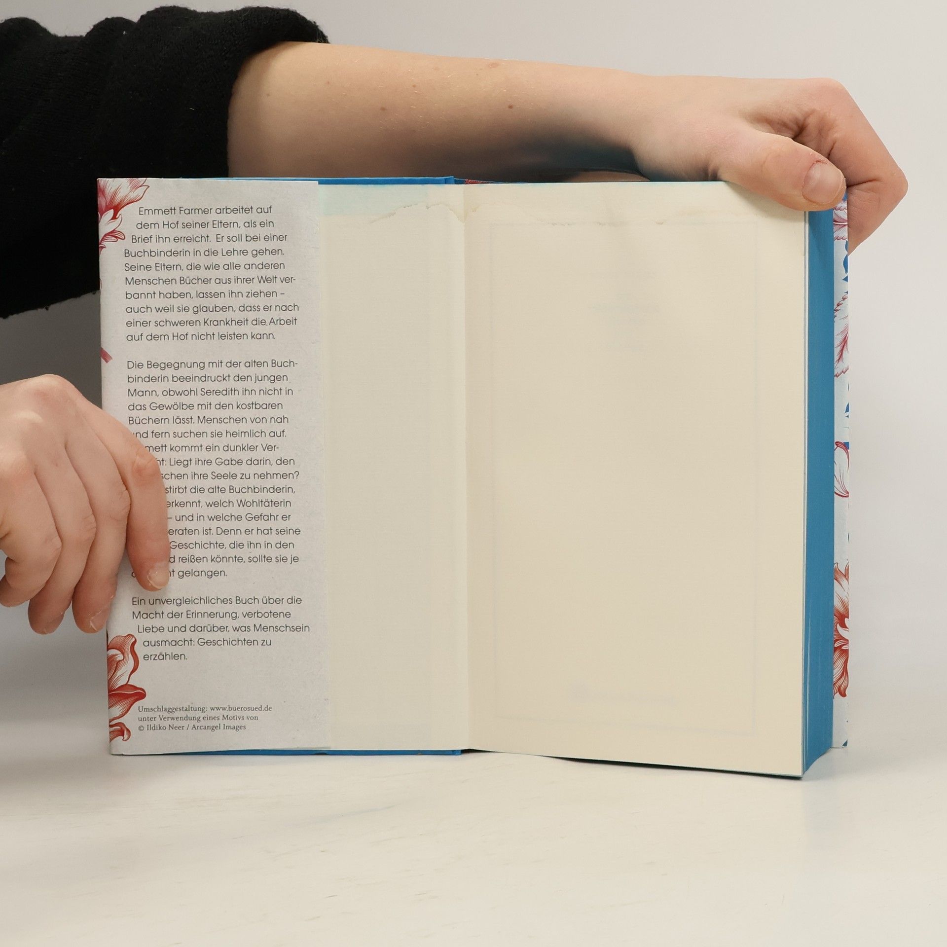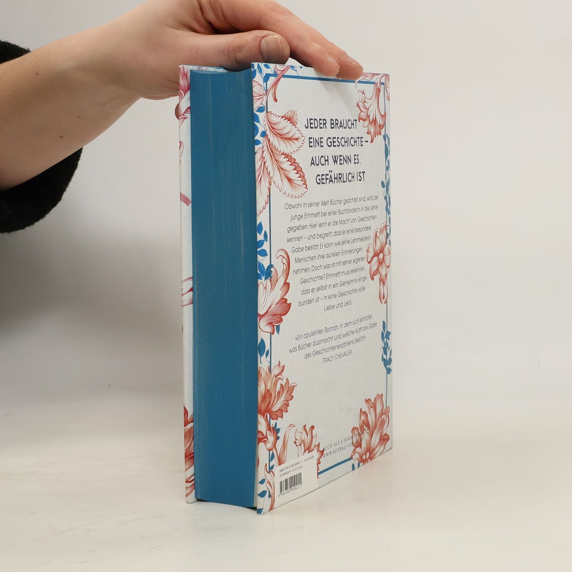 Jeder braucht eine Geschichte – auch wenn es schmerzhaft ist. Emmett Farmer arbeitet auf dem Hof seiner Eltern, als ein Brief ihn erreicht. Er soll bei einer Buchbinderin in die Lehre gehen. Seine Eltern, die wie alle anderen Menschen Bücher aus ihrer Welt verbannt haben, lassen ihn ziehen – auch weil sie glauben, dass er nach einer schweren Krankheit die Arbeit auf dem Hof nicht leisten kann. Die Begegnung mit der alten Buchbinderin beeindruckt den Jungen, dabei lässt Seredith ihn nicht in das Gewölbe mit den kostbaren Büchern. Menschen von nah und fern suchen sie heimlich auf. Emmett kommt ein dunkler Verdacht: Liegt ihre Gabe darin, den Menschen ihre Seele zu nehmen? Nach dem plötzlichen Tod der Buchbinderin erkennt der Junge, welch Wohltäterin sie war – und in welche Gefahr er selbst geraten ist. Ein unvergleichliches Buch über die Macht der Erinnerung, verbotene Liebe und darüber, was das Menschsein bedeutet: Geschichten zu erzählen.