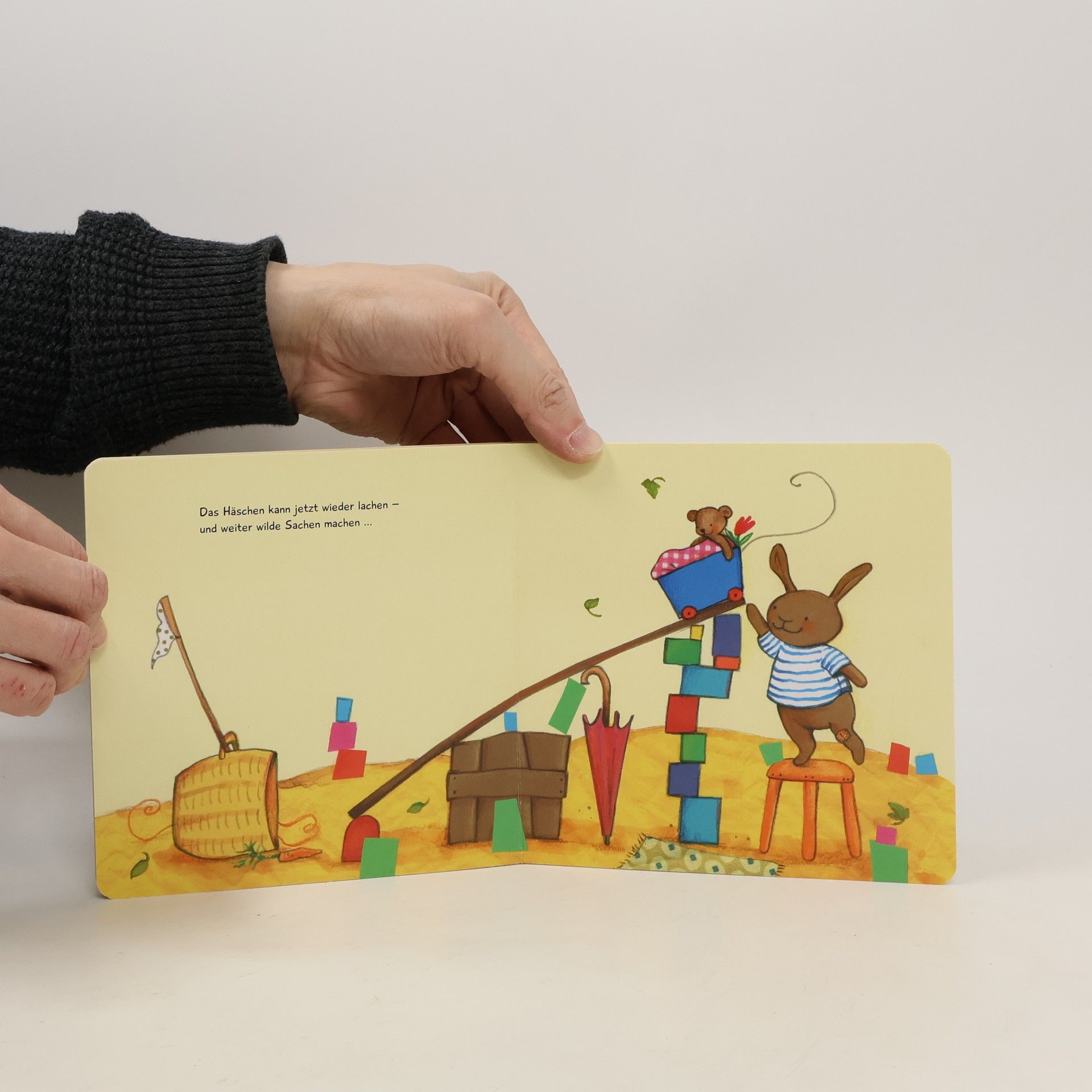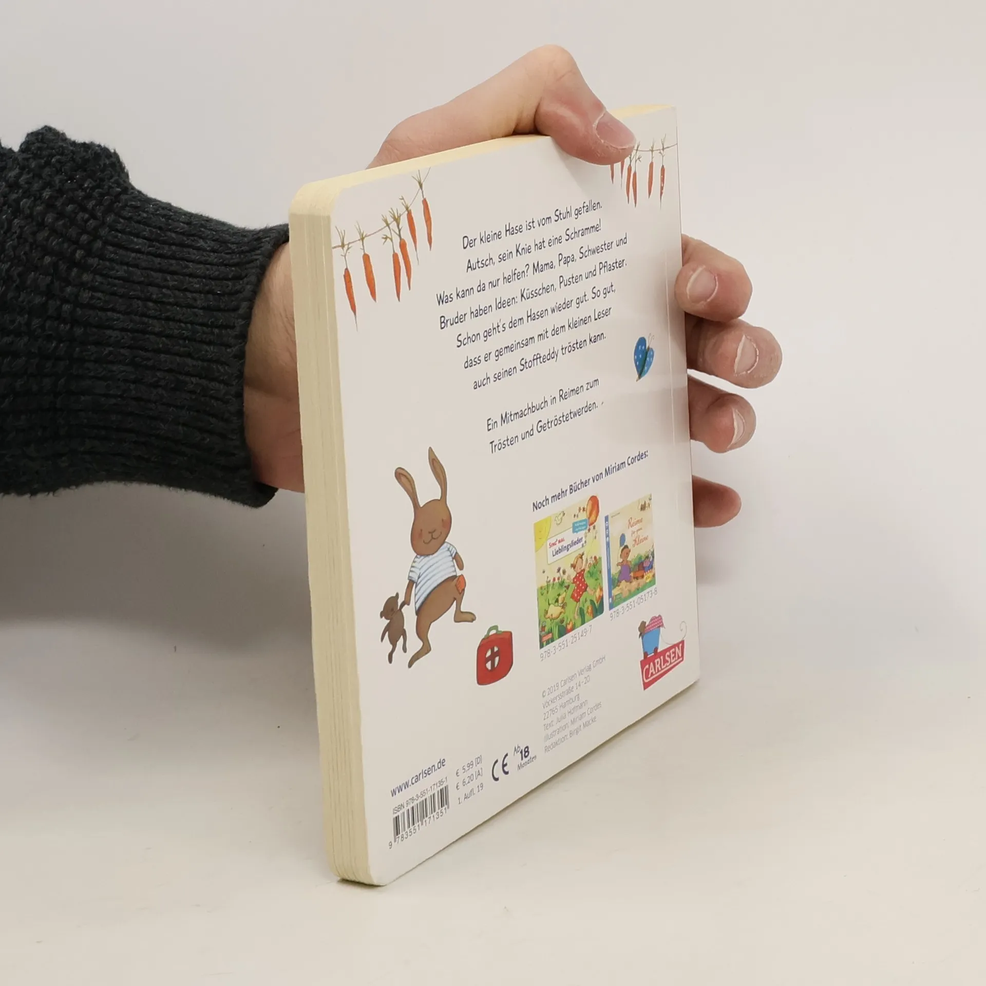 Ein liebevolles Mitmachbuch in Reimen zum Trösten und Getröstetwerden Papa kann besonders gut pusten, wenn das Knie wehtut. Zauberpuste rundherum, jetzt ist das Schlimmste schon fast um. Schramme, Schreck und Tränen: Das gehört zum Kinderalltag und zum Familienleben. Wenn kleine Kinder Schmerzen und Kummer haben, hilft manchmal schon liebevolle Zuwendung und Ablenkung. Dies können Eltern und Kinder mit diesem Buch finden. Denn der kleine Hase ist vom Stuhl geplumpst, und die Familienmitglieder trösten, pusten und kleben ein Pflaster auf … bis das Häschen wieder lacht! Und da dem Häschen das so gut tat, spielt es das gleich noch einmal mit seinem Kuscheltier nach - und der kleine Leser macht mit. Dies ist eine erweiterte und vergrößerte Neuausgabe des Baby Pixis „Mein Tröstebuch“ als stabiles Pappbilderbuch - ab 2 Jahren