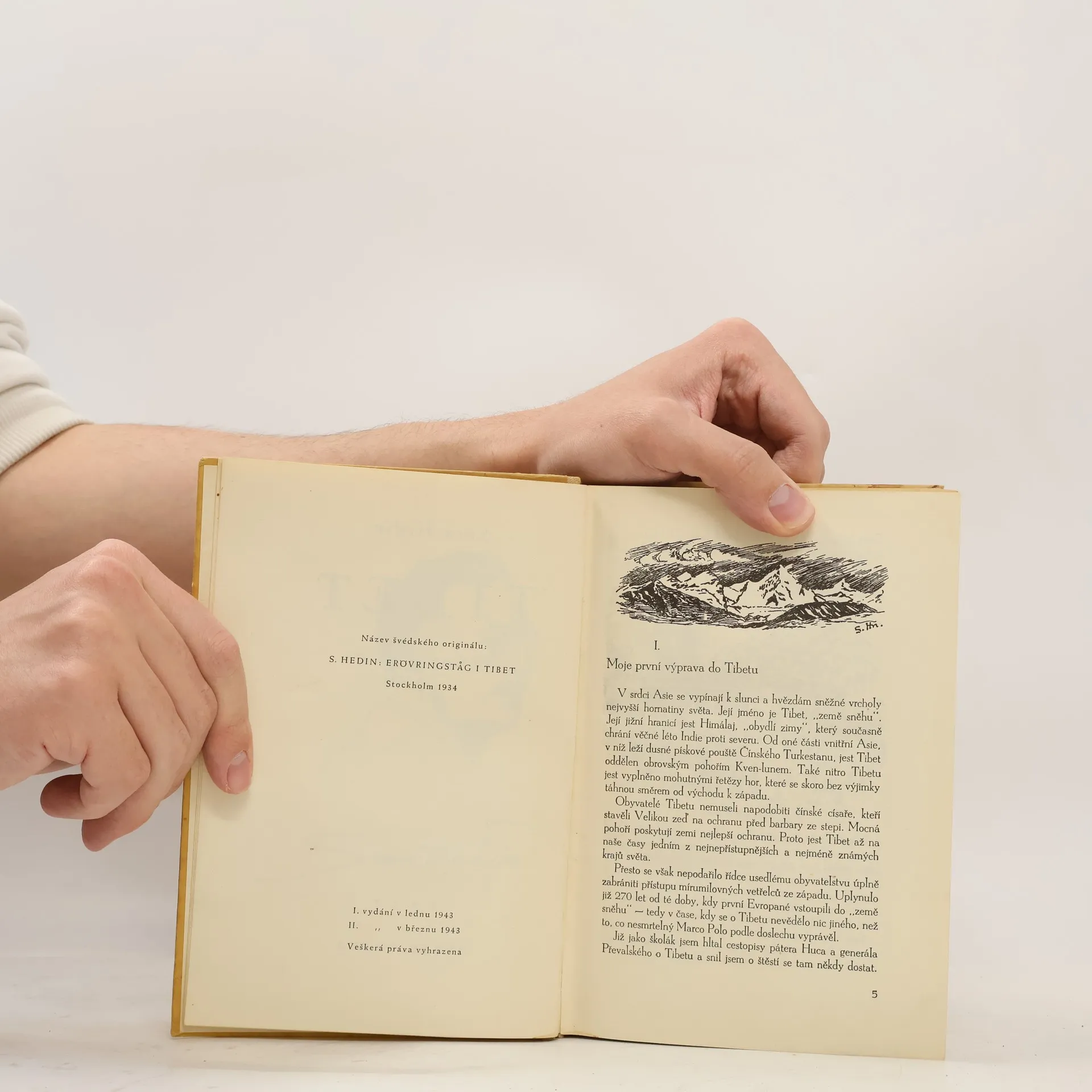 Bohatě ilustrovaný cestopis, vyšel ve Švédsku v roce 1934. Autor v letech 1893-1908 asi třikrát navštívil tibetskou planinu. Kreslil do map hory, řeky, průsmyky, kde dřív byla bílá místa. Cesta do Tibetu, Lhasy, k prameni Brahmaputry a Indu, aj.
