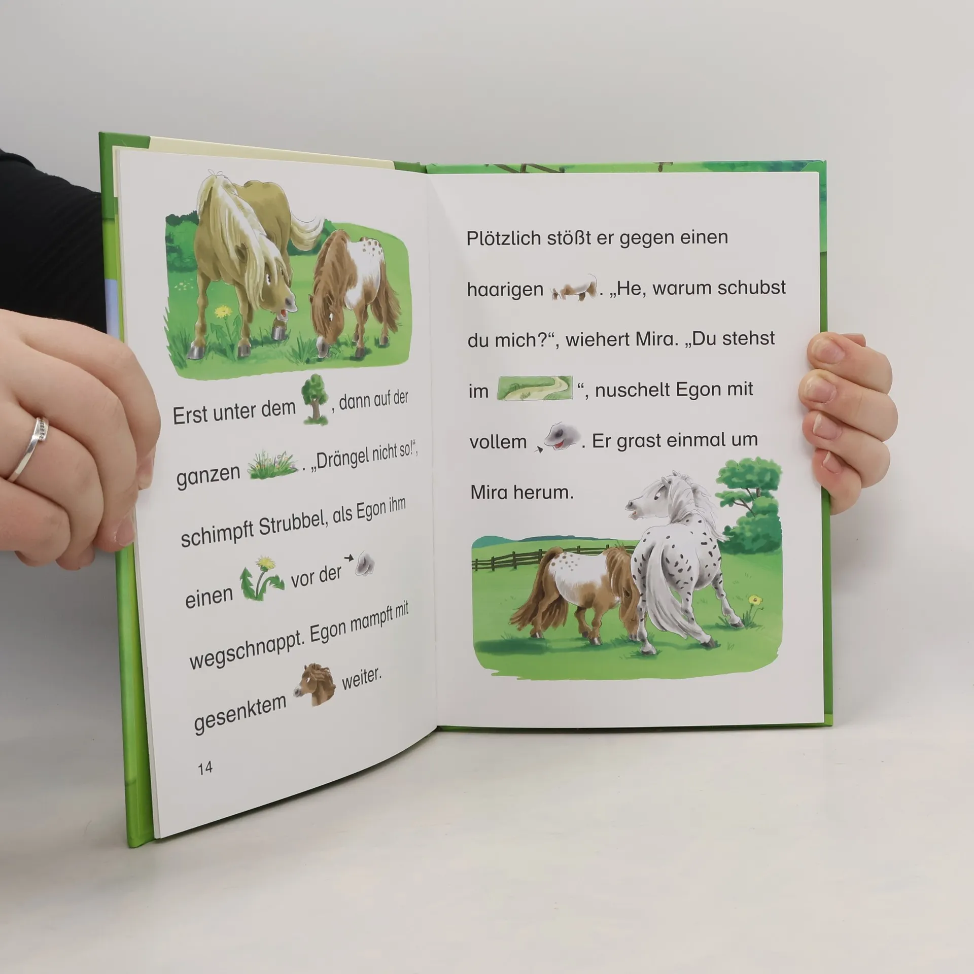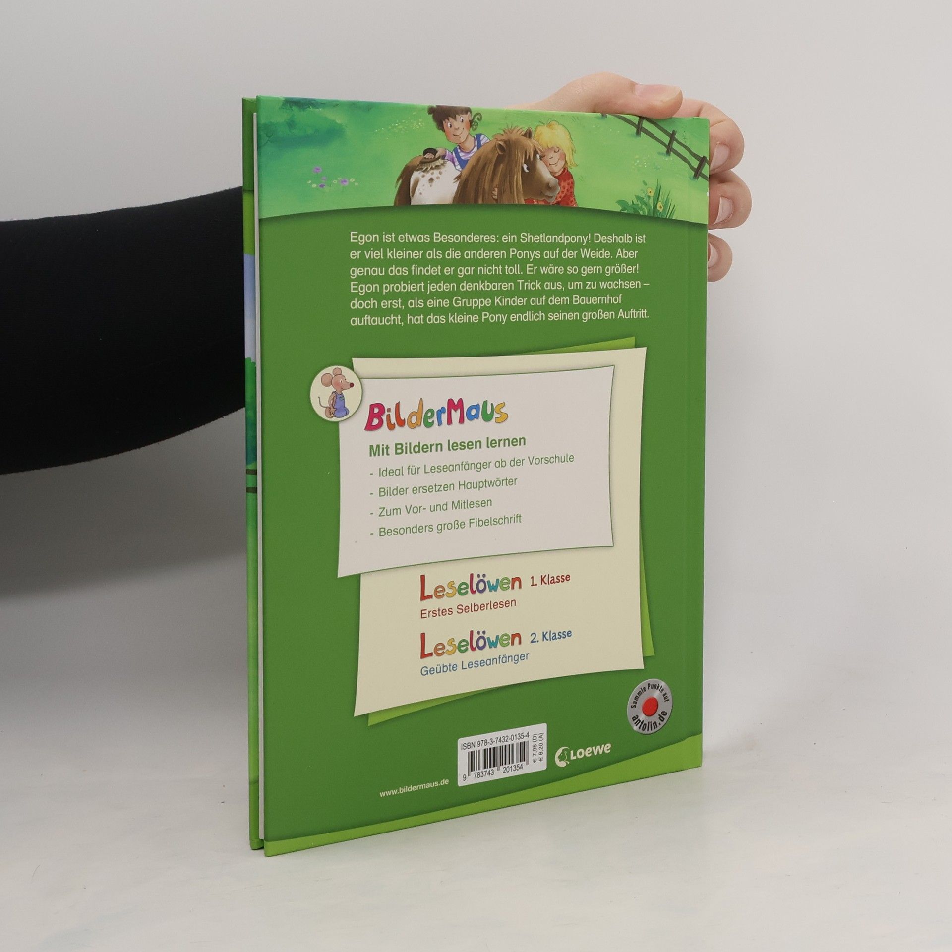 Egon ist etwas Besonderes: ein Shetlandpony! Deshalb ist er viel kleiner als die anderen Ponys auf der Weide. Aber genau das findet er gar nicht toll. Er wäre so gern größer! Egon probiert jeden denkbaren Trick aus, um zu wachsen – doch erst, als eine Gruppe Kinder auf dem Bauernhof auftaucht, hat das kleine Pony endlich seinen großen Auftritt. Mit der Reihe Bildermaus können Kinder schon ab 5 Jahren (Vorschule) spielerisch lesen lernen mit Bildern: Jedes Hauptwort ist durch ein Bild ersetzt. Schenken Sie Ihrem Kind ein Bildermaus -Buch und legen Sie damit den Grundstein zum erfolgreichen Lesenlernen. Warmherzige Geschichte für Pony-Fans Bewährtes Konzept: Seit über 25 Jahren begleitet die Bildermaus Kinder erfolgreich auf dem Weg zum Lesenlernen Über 4 Millionen verkaufte Exemplare in Deutschland, Österreich und der Schweiz Ideal für Leseanfänger ab der Vorschule, zum Vor- und Mitlesen Von Pädagogen mitentwickelt und empfohlen Bilder ersetzen Wörter Abwechslungsreiche und spannende Geschichten Jedes Buch ist genau auf die Interessen von Kindern im Vorschulalter ausgerichtet Einfache, kurze Sätze in großer Fibelschrift unterstützen optimal den Leselern-Prozess Abwechslungsreiche Quizfragen auf Antolin steigern die Lesemotivation