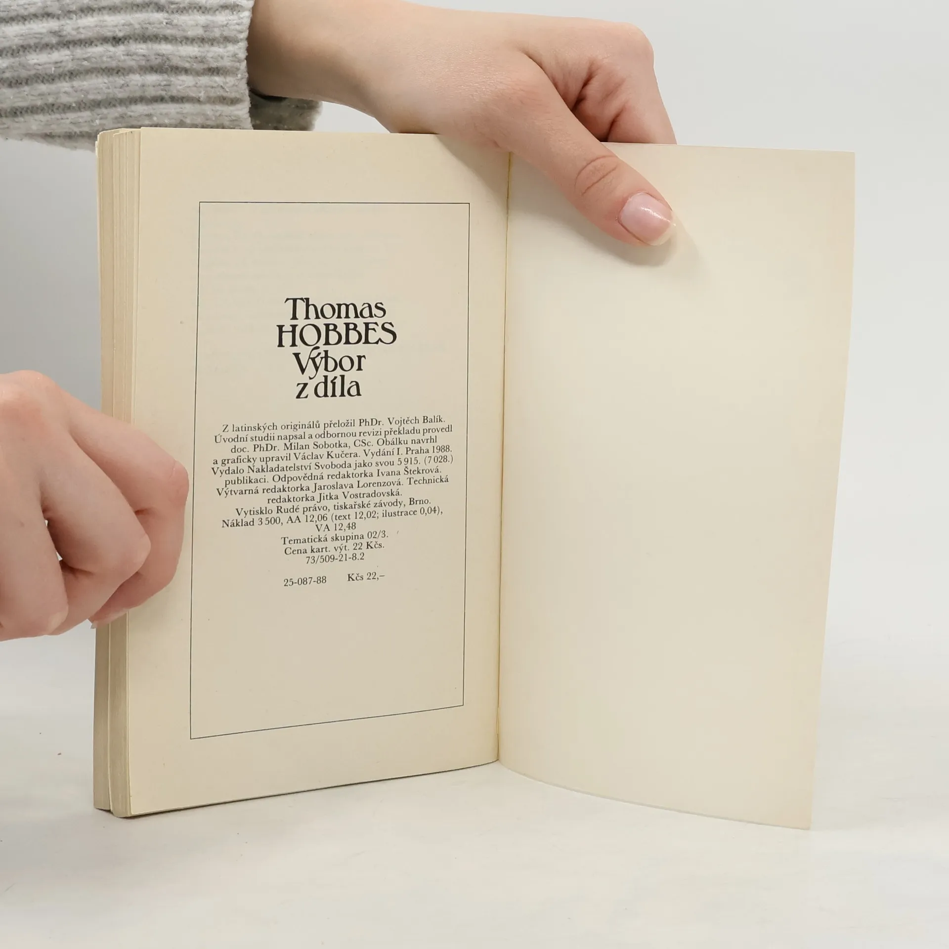 Thomas Hobbes výbor z díla, Thomas Hobbes, Vojtěch Balík, Milan Sobotka