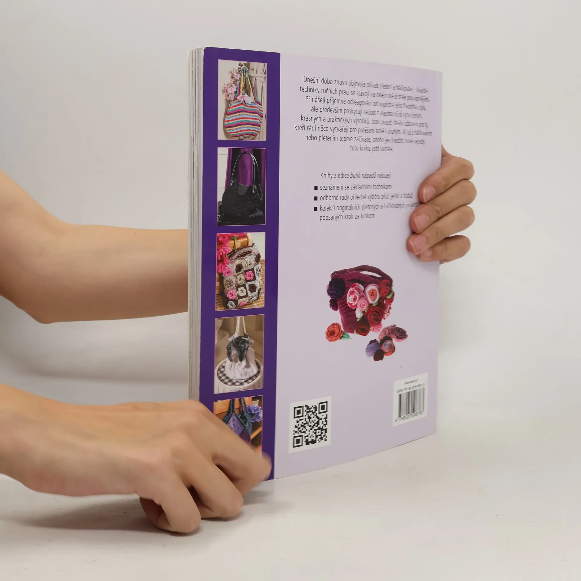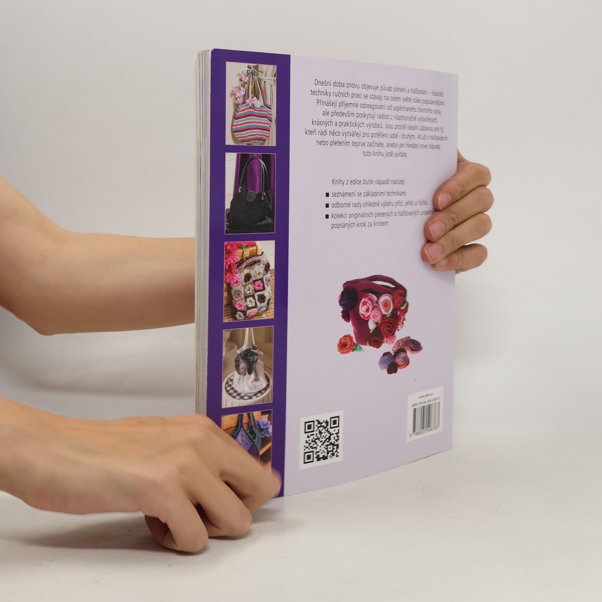 Knížka poskytuje kompletní návody pro zhotovení háčkovaných a pletených kabelek a tašek.