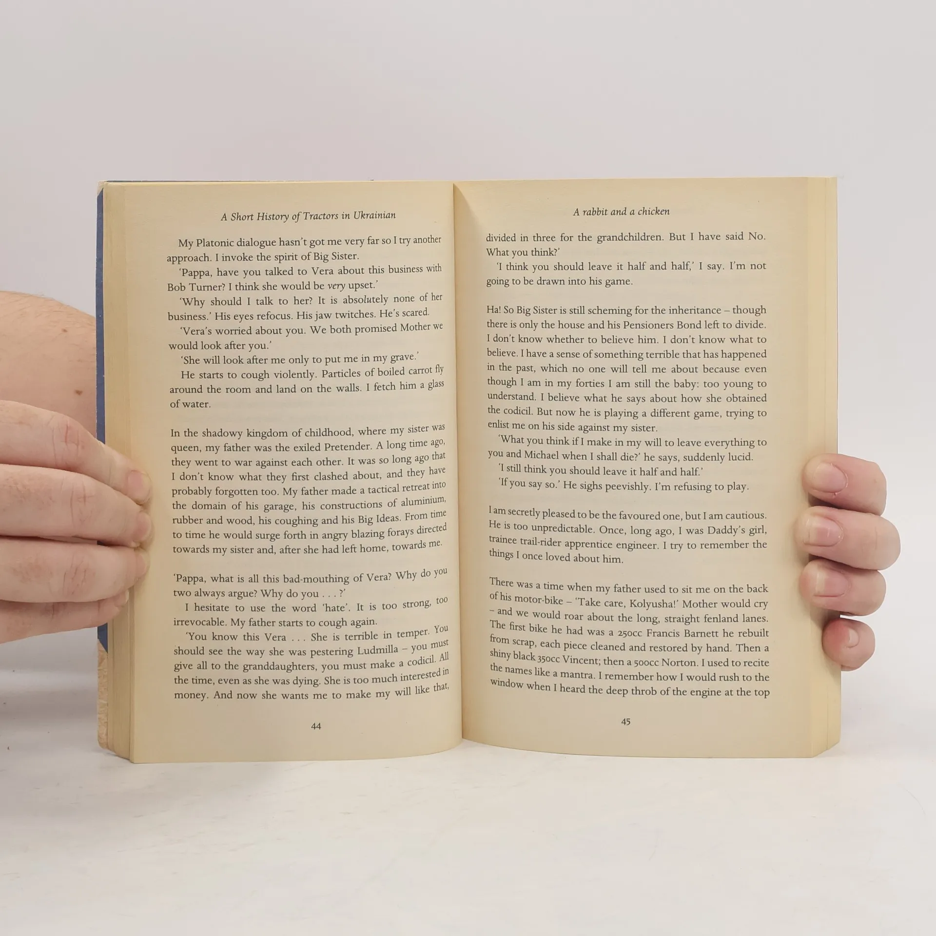 When their recently widowed father announces he plans to remarry, sisters Vera and Nadezhda realise they must put aside a lifetime of feuding in order to save him. His new love is a voluptuous gold-digger from the Ukraine half his age, with a proclivity for green satin underwear and boil-in-the-bag cuisine, who stops at nothing in her single minded pursuit of the luxury Western lifestyle she dreams of. But the old man, too, is pursuing his eccentric dreams - and writing a history of tractors in Ukrainian. A wise, tender and deeply funny novel about families, the healing of old wounds, the trials and consolations of old age and - really - about the legacy of Europe's history over the last fifty years.