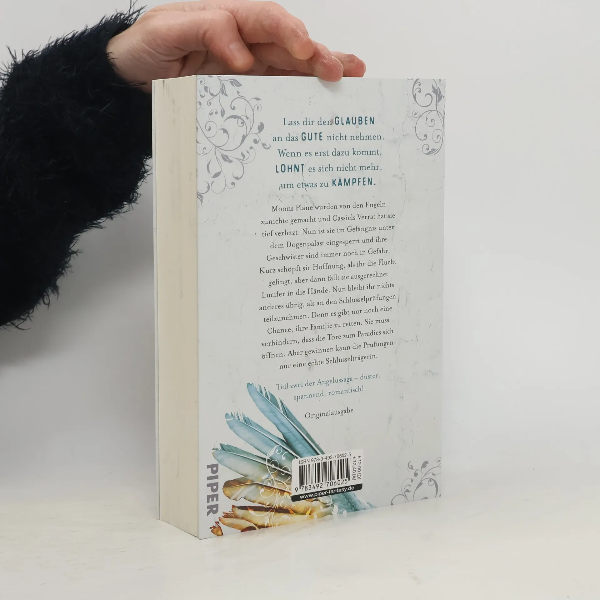 Der Krieg der Engel geht weiter! Romantisch-düstere Fantasy von SPIEGEL-Bestsellerautorin Marah Woolf Der zweite Band der »Angelussaga« ist da – und die Engel kennen kein Erbarmen. Erfolgsautorin Marah Woolf spinnt ihre große Romantasy-Saga um eine Welt voller Engel fort und entfesselt im zweiten Band den unbarmherzigen »Zorn der Engel«: Wenn Moon verhindern will, dass sich die Tore zum Paradies öffnen und Armageddon anbricht, muss sie das Spiel der Engel spielen. Verraten von Cassiel und in den Fängen Lucifers stellt sie sich den Schlüsselprüfungen. Nur so bleibt noch eine Chance für ihre Familie und die Welt. Erbarmungslos spannend – bewegend romantisch Die »Angelussaga« ist gekonnte deutsche Fantasy. Hier kommen nicht nur Fans der romantischen New-Adult-Literatur auf ihre Kosten. Düstere Wendungen und ein anderer Blick auf Engel als Beschützer und Bewacher machen »Zorn der Engel« zu einem Fantasy-Buch mit Suchtfaktor. »Lass dir den Glauben an das Gute nicht nehmen. Wenn es erst dazu kommt, lohnt es sich nicht mehr, um etwas zu kämpfen.« Die »Angelussaga« erscheint exklusiv im Print bei Piper. Fantasy-Queen Marah Woolf ist außerdem Autorin der »HexenSchwesternSaga«, »MondLichtSaga«, »FederLeichtSaga« und »BookLessSaga«.