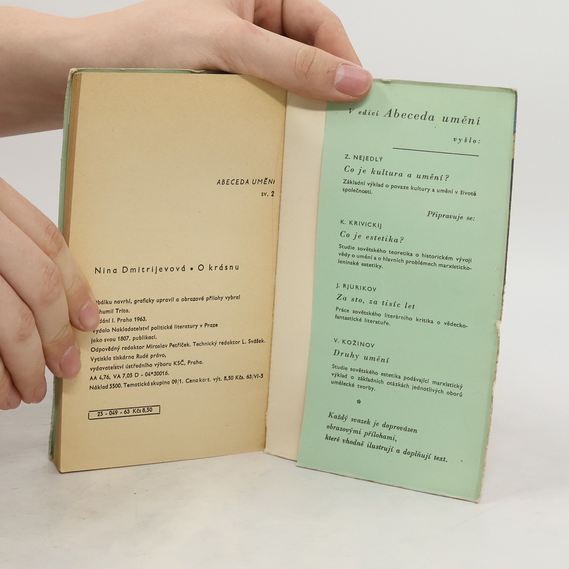 Práce přední sovětské estetičky je určena čtenářům, kteří se chtějí seznámit se základní otázkou vědy o umění - s otázkou krásy - a s hlavními rysy jejího marxistického pojetí. Není to odborná vědecká studie, ale prostý, obecně srozumitelný výklad teoretických problémů. Výrazným kladem této práce je její široké zaměření: neomezuje se pouze na otázky umělecké tvorby, ale všímá si aktuálních otázek životního slohu socialistické společnosti, užitého umění, estetiky pracovního prostředí, kultury lidských vztahů apod. Autorka vychází od nejjednodušších estetických prožitků a ve svém výkladu dospívá k objasnění principů krásy v přírodě, ve společenském životě i v umění. Zvláštní pozornost věnuje vzájemnému poměru mezi estetikou a etikou, v němž spatřuje jednu z nejdůležitějších otázek, kterou je třeba zodpovědět, má-li umění plnit svoji výchovnou funkci a mají-li být správně chápány jeho zvláštní zákonitosti. Nemalou předností autorčiny práce je pak i to, že její výklad je důsledně historický, že přihlíží k průběhu vývojového procesu, kterým procházela společnost i umělecká tvorba. To autorce umožnilo podat ucelený úvod do problematiky krásna v životě a v umění a poskytnout tak i odborně neškolenému čtenáři teoreticky propracované poučení o hodnotách, které obohacují vnitřní svět člověka a upevňují jeho vztah k velkým společenským ideálům.