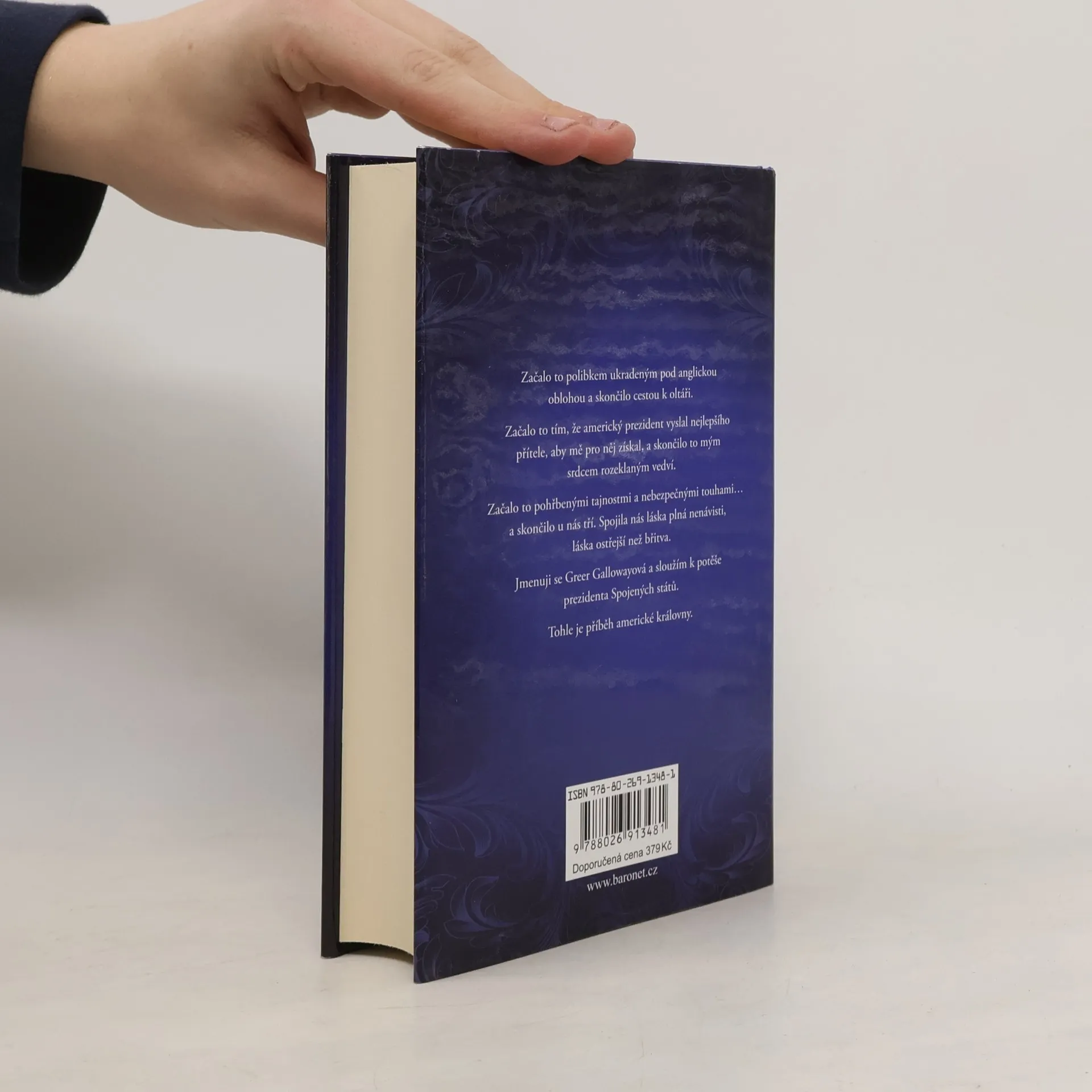 Začalo to polibkem ukradeným pod anglickou oblohou a skončilo cestou k oltáři. Začalo to tím, že americký prezident vyslal nejlepšího přítele, aby mě pro něj získal, a skončilo to mým srdcem rozeklaným vedví. Začalo to pohřbenými tajnostmi a nebezpečnými touhami… a skončilo u nás tří. Spojila nás láska plná nenávisti, láska ostřejší než břitva. Jmenuji se Greer Gallowayová a sloužím k potěše prezidenta Spojených států. Tohle je příběh americké královny.