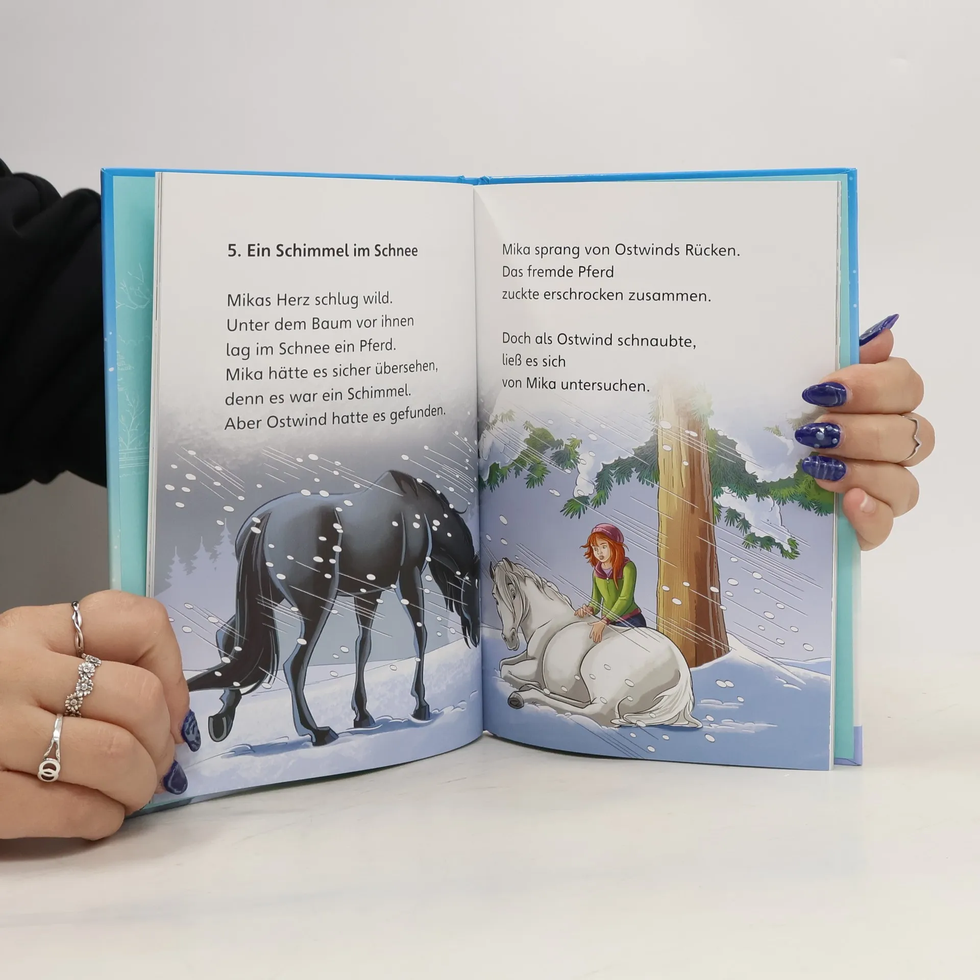 Die beliebten Abenteuer von Ostwind und Mika zum Lesenlernen! Mika reitet mit ihrem geliebten Hengst Ostwind durch die zauberhafte Winterlandschaft. Plötzlich werden die beiden von einem Schneesturm überrascht und verirren sich im Wald. Dort entdecken sie eine Schimmelstute, die dringend ihre Hilfe benötigt … Eine spannende Pferdegeschichte mit Mika und Ostwind zum Selberlesen. Mit großer, gut erfassbarer Schrift und vielen vierfarbigen Illustrationen macht Lesen üben mit Ostwind Spaß! Ideal für Leseanfängerinnen und Leseanfänger ab 6 Jahren.