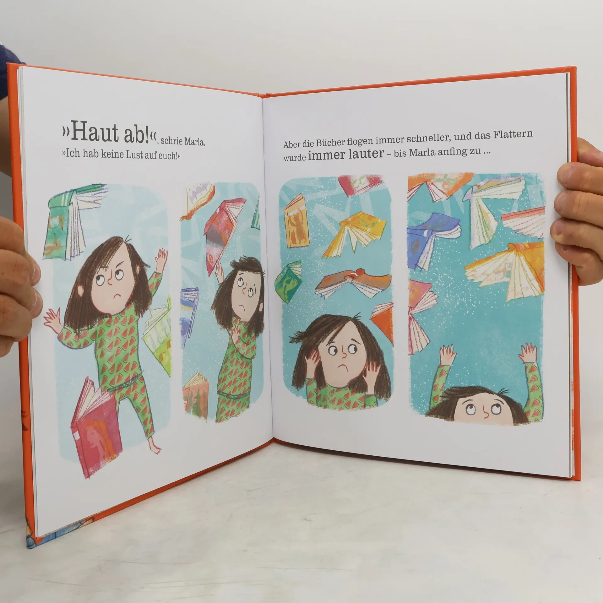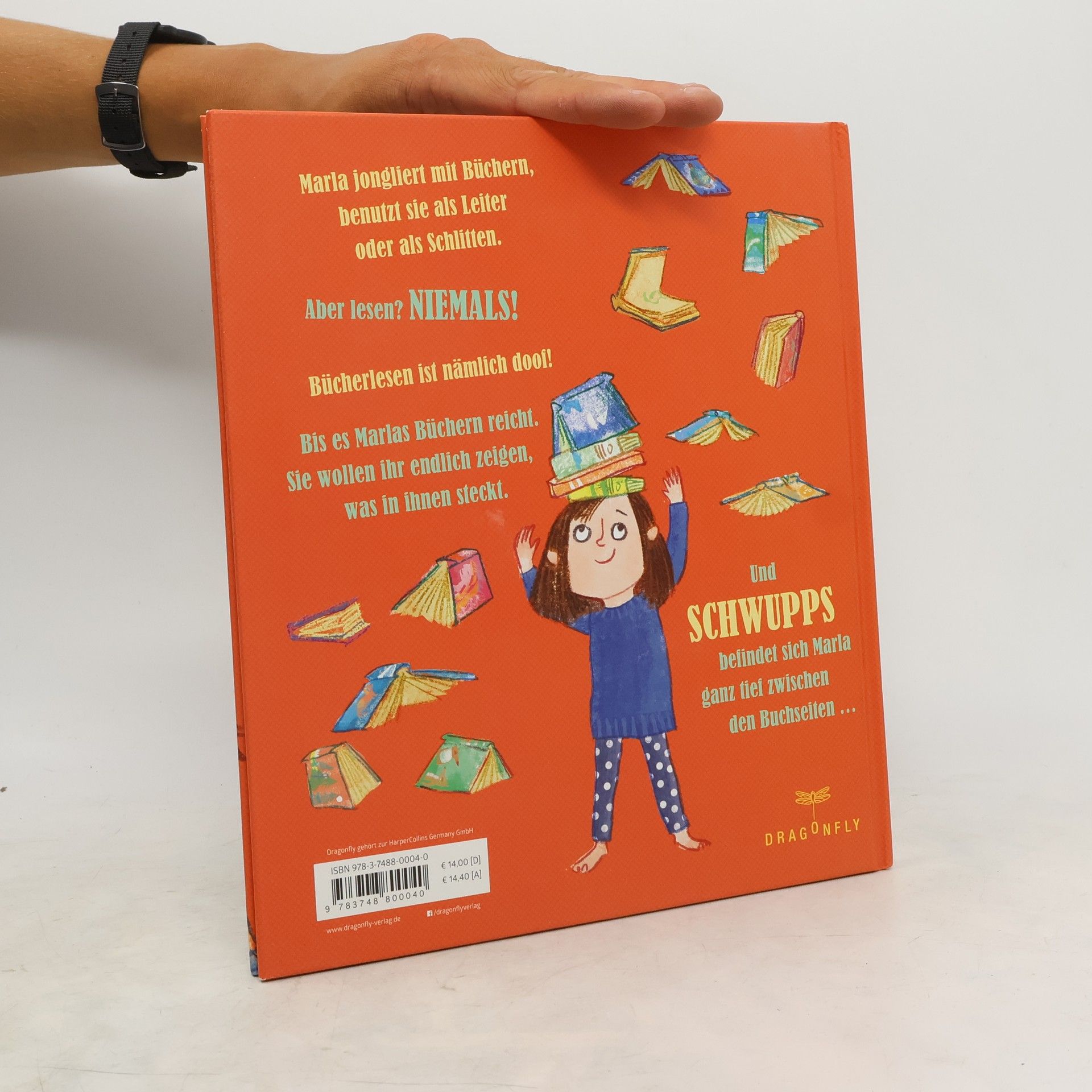 Lesen ist ein Abenteuer Marla jongliert mit Büchern, benutzt sie als Leiter oder als Schlitten. Aber lesen? NIEMALS! Bücherlesen ist nämlich doof! Bis es Marlas Büchern reicht. Sie wollen ihr endlich zeigen, was in ihnen steckt. Und – SCHWUPPS – befindet sich Marla ganz tief zwischen den Buchseiten. »Sehr zu empfehlen!« (Arbeitsgemeinschaft Jugendliteratur und Medien) Dieser Titel ist auch bei Antolin gelistet.