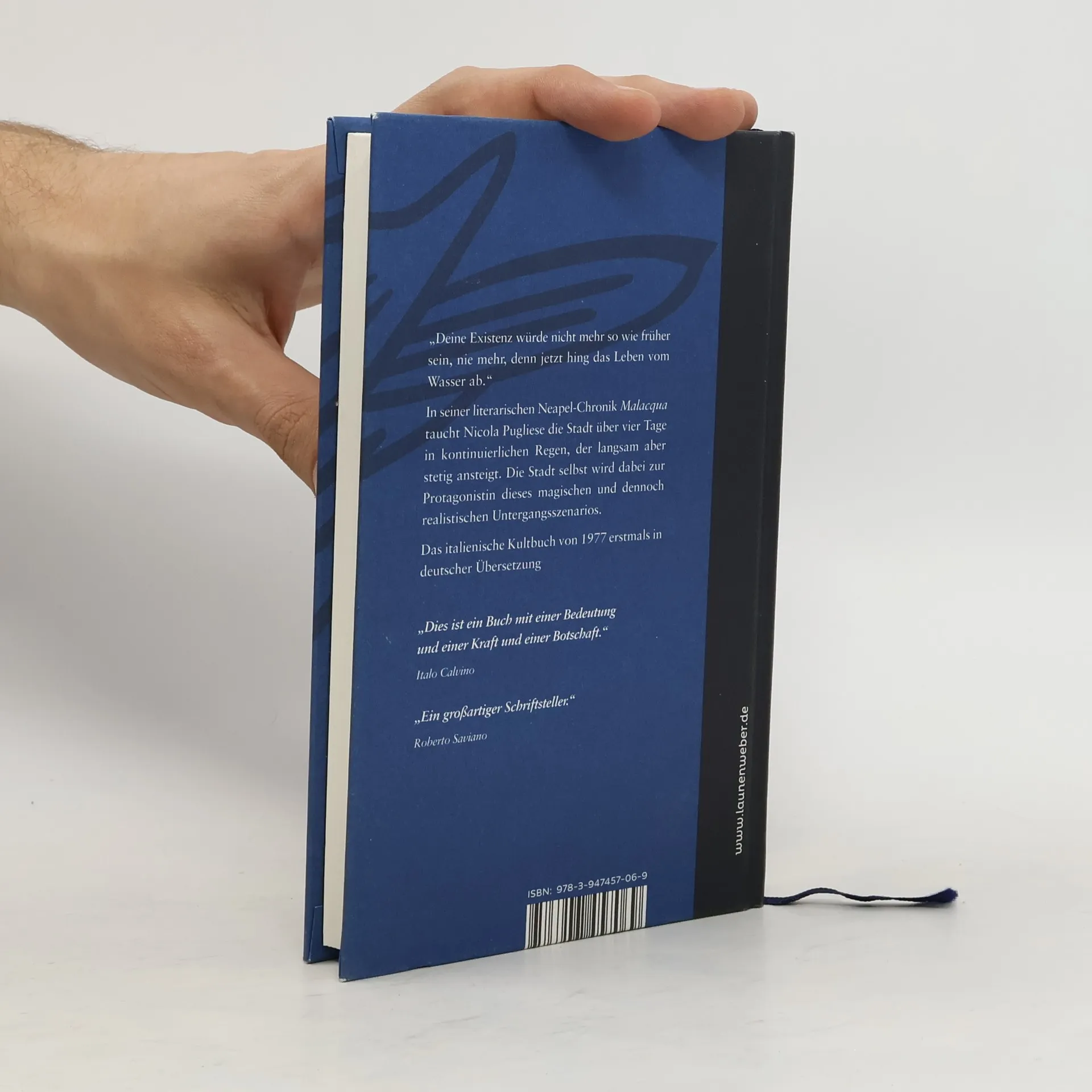 In seiner literarischen Neapel-Chronik Malacqua taucht Nicola Pugliese die Stadt über vier Tage in kontinuierlichen Regen, der langsam aber stetig ansteigt, während sich eine spannungsgeladene Unruhe, eine schwüle Erwartung über die Stadt senkt und die Neapolitaner wie atemlos einer neuen, schrecklichen Stimme entgegenharren. Die Stadt selbst wird dabei zur Protagonistin dieses magischen und dennoch realistischen Untergangsszenarios: Sie legt Hand an, steuert Mosaikteile bei, wenn es gilt, klischeehafte Visionen ihrer selbst aufzubauen und arbeitet doch gleichzeitig an deren Demontage. Das italienische Kultbuch von 1977, verblüffender Weise von weiterer Veröffentlichung zurückgehalten, wird nun in der Verlagsreihe LW italica des LAUNENWEBER Verlages erstmals in deutscher Sprache in der Übersetzung von Barbara Pumhösel vorgelegt.