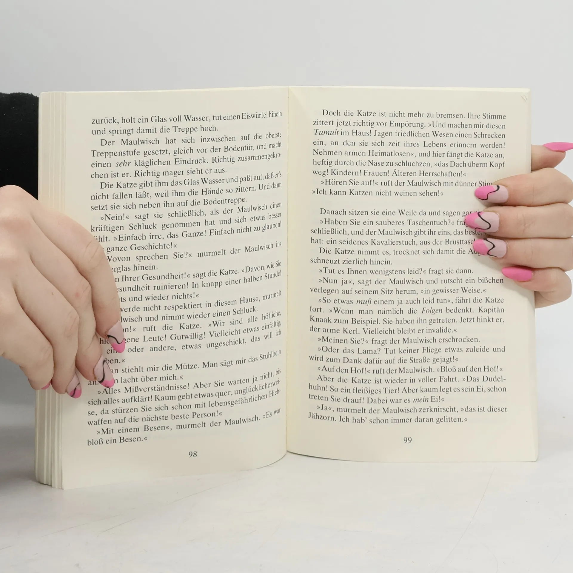 „Stackeln an der Kruke! Endstation". Eigentlich wollte die Katze mit Hut nach Hamburg - gelandet ist sie in Stackeln. Sie findet ein Haus und betreibt dort eine Pension, die allerlei seltsame Besucher anzieht. Da sind Kapitän Knaak, das Dudelhuhn, Wildschwein Baby Hübner, der Zapageck und einige mehr – und die Katze kümmert sich um alle.