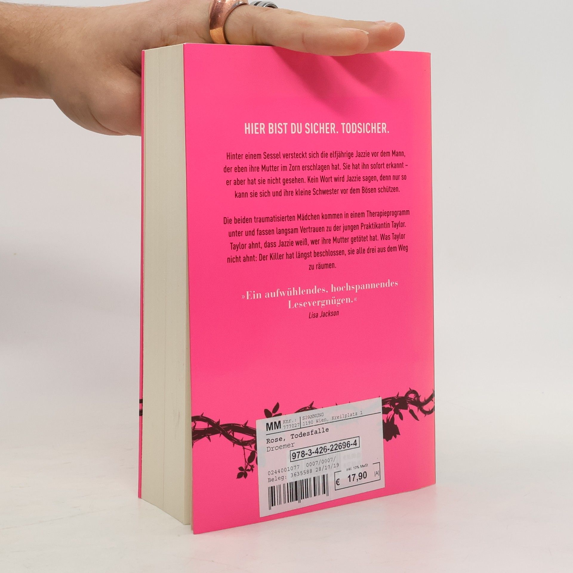 Nach dem Abschluss der Dornen-Reihe kehrt die amerikanische Thriller-Autorin Karen Rose nach Baltimore zurück. Im fünften Teil der Baltimore-Reihe geraten zwei Mädchen und eine junge Frau ins Visier eines eiskalten Killers. Die elfjährige Jazzie versteckt sich hinter einem Sessel, während der Mann, der ihre Mutter erschlagen hat, im Raum ist. Jazzie hat ihn erkannt, wird aber kein Wort sagen, um sich und ihre kleine Schwester zu schützen. Taylor Dawson ist mit einer Lüge aufgewachsen und will in Baltimore die Wahrheit über ihren Vater Clay Maynard herausfinden, den ihre Mutter als Monster bezeichnete. Als Sicherheitschef in einem Programm für traumatisierte Kinder arbeitet, schleicht sich Taylor als Praktikantin ein. Dabei kommt sie Clay näher und gewinnt das Vertrauen von Jazzie, ohne zu ahnen, dass der Killer plant, sie und die beiden Mädchen zu beseitigen. Die Geschichte verspricht ein aufwühlendes, hochspannendes Lesevergnügen und hält die Leser in Atem. Die Baltimore-Thriller sind in folgender Reihenfolge erschienen: »Todesherz«, »Todeskleid«, »Todeskind«, »Todesschuss« und »Todesfalle«.