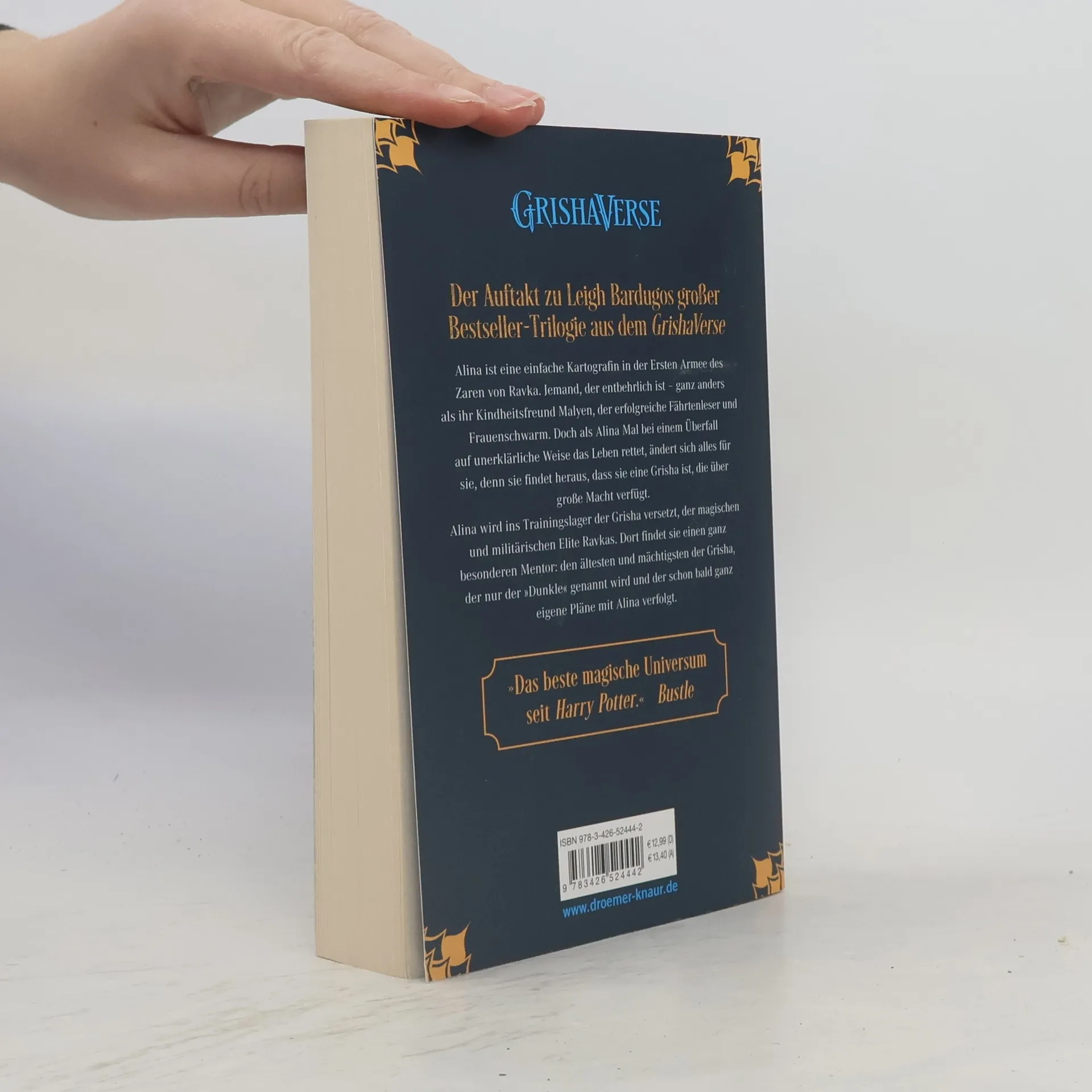 Der Auftakt zum Fantasy-Abenteuer über die magische Armee der Grisha und den Krieg um Ravka von Bestseller-Autorin Leigh Bardugo (»Das Lied der Krähen«, »Das Gold der Krähen«) – in neuer, aufwendig veredelter Ausstattung: Alina ist eine einfache Kartografin in der Ersten Armee des Zaren von Ravka. Jemand, der entbehrlich ist – ganz anders als ihr Kindheitsfreund Malyen, der erfolgreiche Fährtenleser und Frauenschwarm. Doch als Alina Mal bei einem Überfall auf unerklärliche Weise das Leben rettet, ändert sich alles für sie, denn sie findet heraus, dass sie eine Grisha ist, die über große Macht verfügt. Alina wird ins Trainingslager der Grisha versetzt, der magischen und militärischen Elite Ravkas. Dort findet sie einen ganz besonderen Mentor: Den ältesten und mächtigsten der Grisha, der nur der »Dunkle« genannt wird und der schon bald ganz eigene Pläne mit Alina verfolgt. Fantasy, Märchen, zarte Romanze: Mit dem vom Krieg zerrissenen Ravka, dem ausgeklügelten Magie-System der Grisha und ihren lebendigen, facettenreichen Charakteren hat Leigh Bardugo eine Welt abseits ausgetretener Pfade entwickelt.Ein echtes Fantasy-Highlight, nicht nur für Fans der Bestseller »Das Lied der Krähen« und »Das Gold der Krähen« Die Grisha-Trilogie ist in folgender Reihenfolge erschienen:• »Goldene Flammen«• »Eisige Wellen«• »Lodernde Schwingen«