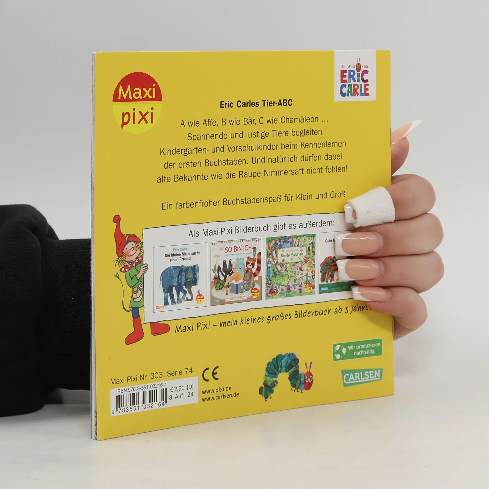 A wie Affe, B wie Bär, C wie Chamäleon ... Spannende und lustige Tiere begleiten Kindergarten- und Vorschulkinder beim Kennenlernen der ersten Buchstaben. Und natürlich dürfen dabei alte Bekannte wie die Raupe Nimmersatt nicht fehlen! Ein farbenfroher Buchstabenspaß für klein und groß. Maxi Pixi – die kleinen großen Bilderbücher im Softcover.