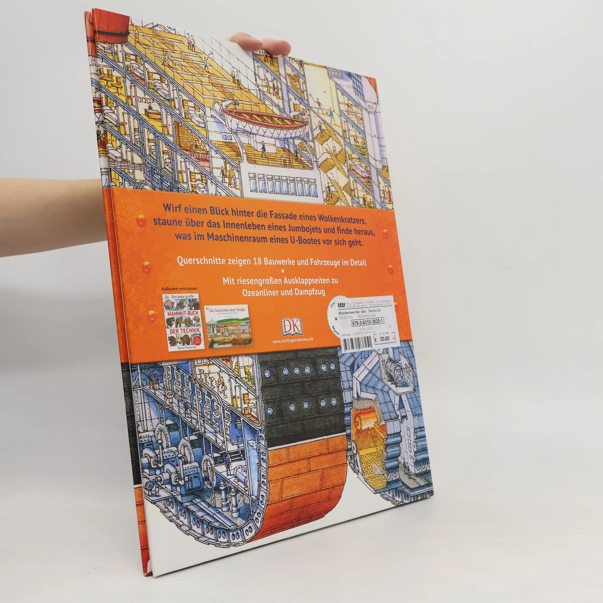 Technische Wunderwerke in einzigartigen Wimmelbildern. Der preisgekrönte Illustrator Stephen Biesty enthüllt in seinen detailreichen Wimmelbildern faszinierende Einblicke in 18 beeindruckende Bauwerke und Fahrzeuge. Fantastische Querschnitte zeigen das spannende Innenleben eines Wolkenkratzers oder den Maschinenraum eines U-Bootes. Zwei große Ausklappseiten eines Ozeanriesen und einer Dampflok versetzen junge Entdecker ins Staunen. Biestys einzigartiger Illustrationsstil und die Liebe zum Detail zeichnen seine Werke aus. Für seine überwältigenden Querschnitte erhielt er mehrere renommierte Preise, darunter den „The New York Times Best Illustrated Book Award“ und den „UK Literary Association Children's Book Award“. Diese überarbeitete Neuauflage des Klassikers, der über 1 Million Mal verkauft wurde, beeindruckt durch ihr Großformat und Biestys zeitlose Illustrationen. Wimmelbuch für Technikfans ab 8 Jahren – die Highlights im Überblick: • 18 technische Wunderwerke im Querschnitt, von der Burg bis zur Raumfähre. • Technik visuell erklärt durch dreidimensionale Scheiben oder Blöcke. • Lustiges Suchspiel auf jeder Seite. • Jede große Panoramazeichnung zeigt eine Fülle an aufregenden Details. • Riesige Ausklappseiten sorgen für den Wow-Effekt. Dieses Wimmelbuch bietet einen einzigartigen und detailreichen Blick ins Innere der beeindruckendsten Fahrzeuge und Bauwerke! Verfügbar bei Antolin.de.
