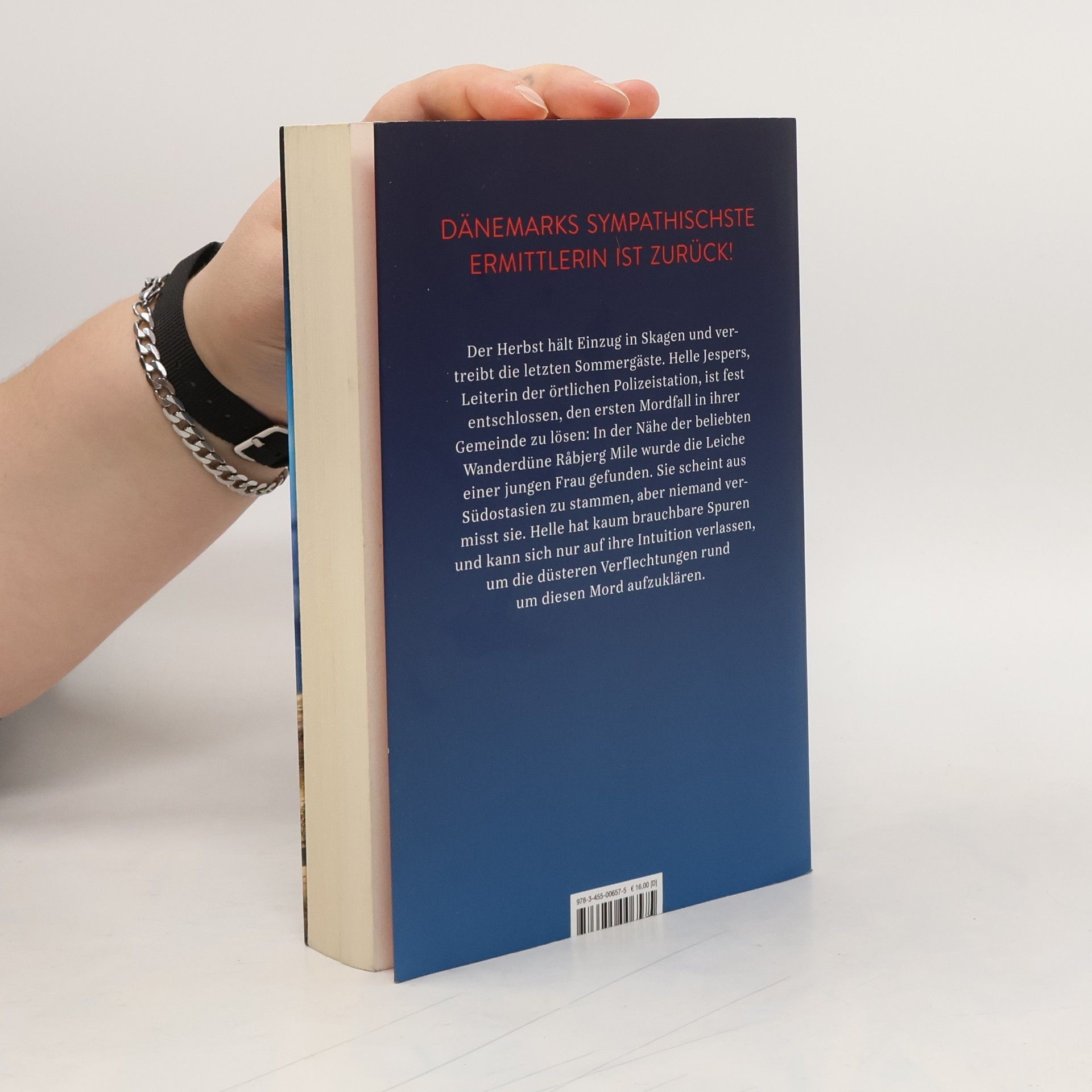 Der zweite Fall von Dänemarks sympathischster Ermittlerin Der Herbst hält EInzug in Skagen und vertreibt die letzten Sommergäste. Helle Jespers, Leiterin der örtlichen Polizeistation, sehnt sich nach mehr Zeit und weniger Trubel. Doch die Ruhe währt nur kurz, denn in der Nähe der beliebten Wanderdüne Rabjerg Mile wird die Leiche einer jungen Frau gefunden. Laut Obduktion stammt sie offenbar aus dem südostasiatischen Raum. Doch niemand scheint sie zu vermissen. Die Vermutung liegt nahe, dass sie sich illegal in Dänemark aufhielt. Helle Jespers ist fest entschlossen, den ersten Mordfall in ihrer Gemeinde aufzuklären, und stößt dabei auf die Saschattenseiten der scheinbar so offenen dänischen Gesellschaft.