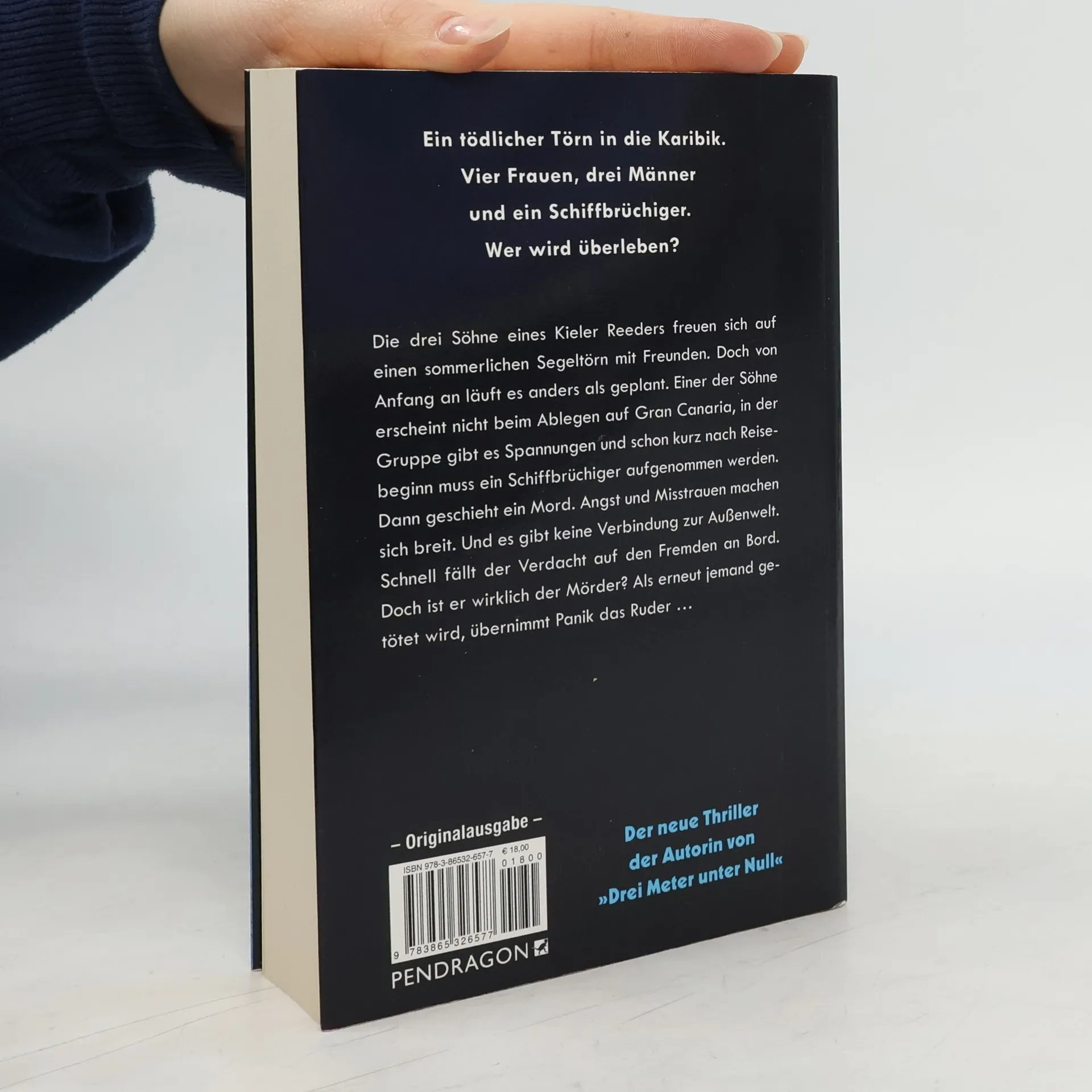 EIN TÖDLICHER TÖRN IN DIE KARIBIK. VIER FRAUEN, DREI MÄNNER UND EIN SCHIFFBRÜCHIGER. WER WIRD ÜBERLEBEN? Die drei Söhne eines Kieler Reeders freuen sich auf einen sommerlichen Segeltörn mit Freunden. Doch von Anfang an läuft es anders als geplant. Einer der Söhne erscheint nicht beim Ablegen auf Gran Canaria, in der Gruppe gibt es Spannungen und schon kurz nach Reisebeginn muss ein Schiffbrüchiger aufgenommen werden. Dann geschieht ein Mord. Angst und Misstrauen machen sich breit. Und es gibt keine Verbindung zur Außenwelt. Schnell fällt der Verdacht auf den Fremden an Bord. Doch ist er wirklich der Mörder? Als erneut jemand getötet wird, übernimmt Panik das Ruder ...