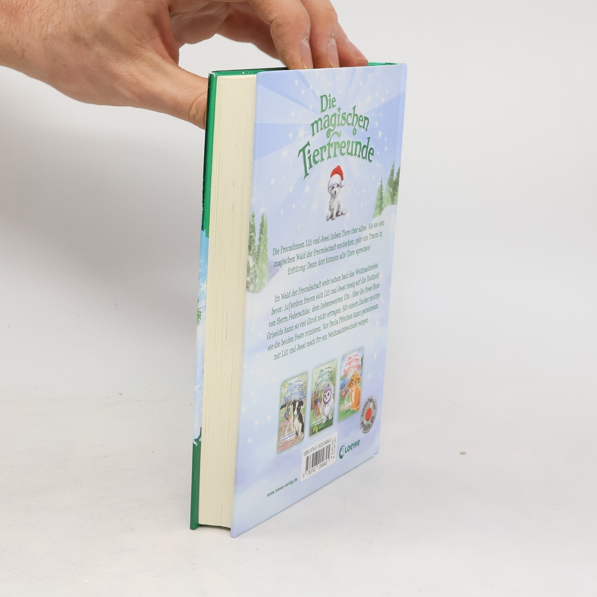 Im Wald der Freundschaft steht das große Weihnachtsfest bevor. Außerdem freuen sich Lili und Jessi riesig auf die Hochzeit von Herrn Federschlau, dem liebenswerten Uhu. Aber die fiese Hexe Griselda kann so viel Glück nicht ertragen: Mit einem Zauber möchte sie die beiden Feste ruinieren. Nur Paula Pfötchen kann gemeinsam mit Lili und Jessi noch für ein Weihnachtswunder sorgen … Ein stimmungsvoller Weihnachtsband rund um einen kleinen Hundewelpen – drei zusammenhängende Geschichten zur wohl schönsten Zeit des Jahres. Magische und zauberhafte Geschichten mit zahlreichen liebenswerten Illustrationen, die jedes Kinderherz ab 7 Jahren höher schlagen lassen. Die Freundinnen Lili und Jessi folgen einer geheimnisvollen Katze in den Wald der Freundschaft. Dort können alle Tiere sprechen und gemeinsam erleben sie spannende Abenteuer. Durch die kurzen Kapitel eignet sich die Reihe besonders für Leseanfänger. Tierpflegetipps runden die Geschichten um Die magischen Tierfreunde perfekt ab. Die komplette Buchreihe Die magischen Tierfreunde ist auf Antolin. de gelistet.