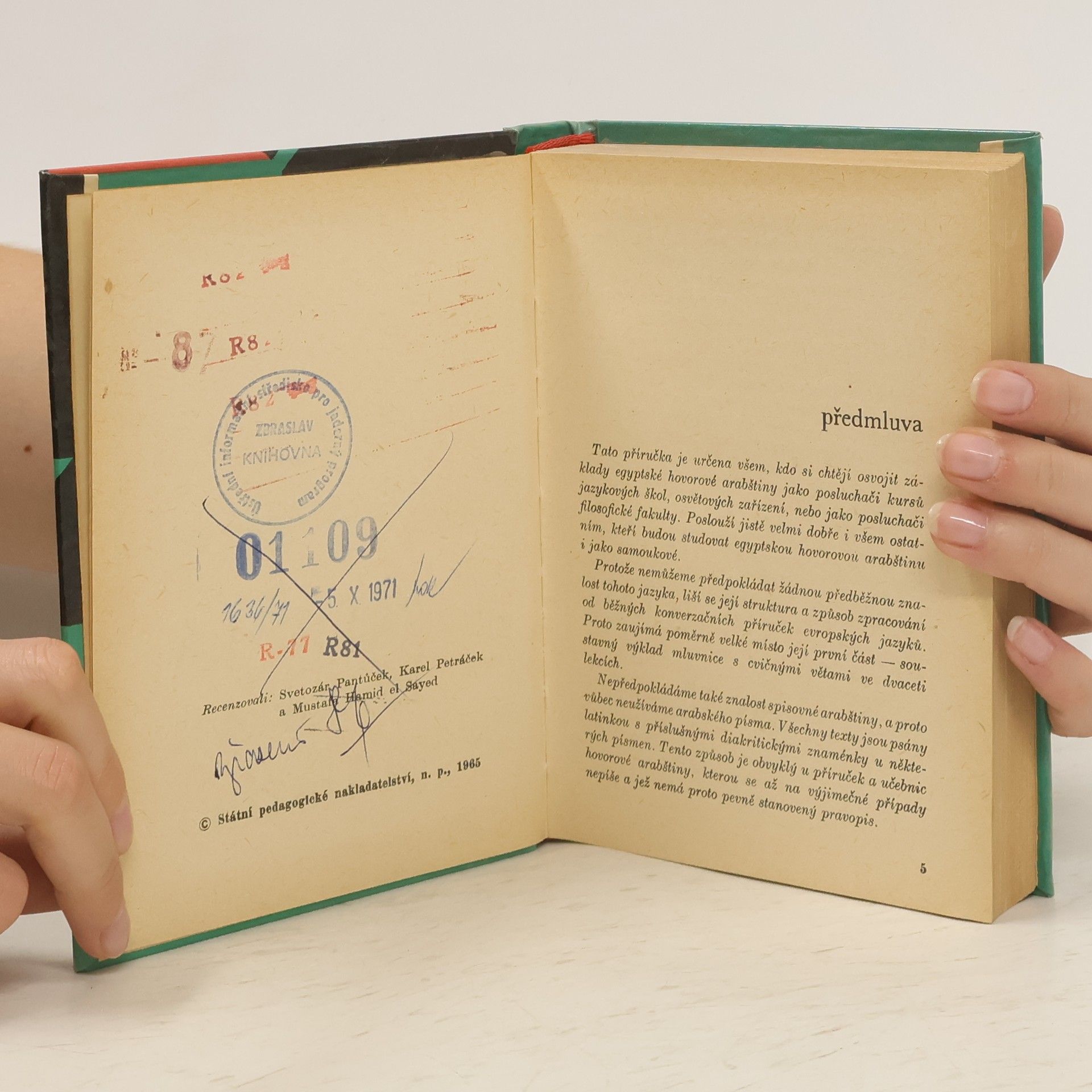 Učebnice od předních českých arabistů prof. Jaroslava Oliveria prof. Rudolfa Veselého provede zájemce o egyptskou hovorovou arabštinu ve 20 lekcích základy gramatiky. V každé lekci je rovněž přidělena slovní zásoba, cvičení a jednoduché články. Druhá část knihy slouží jako konverzační příručka z okruhů běžného denního života, tak i života společenského, či administrativního.