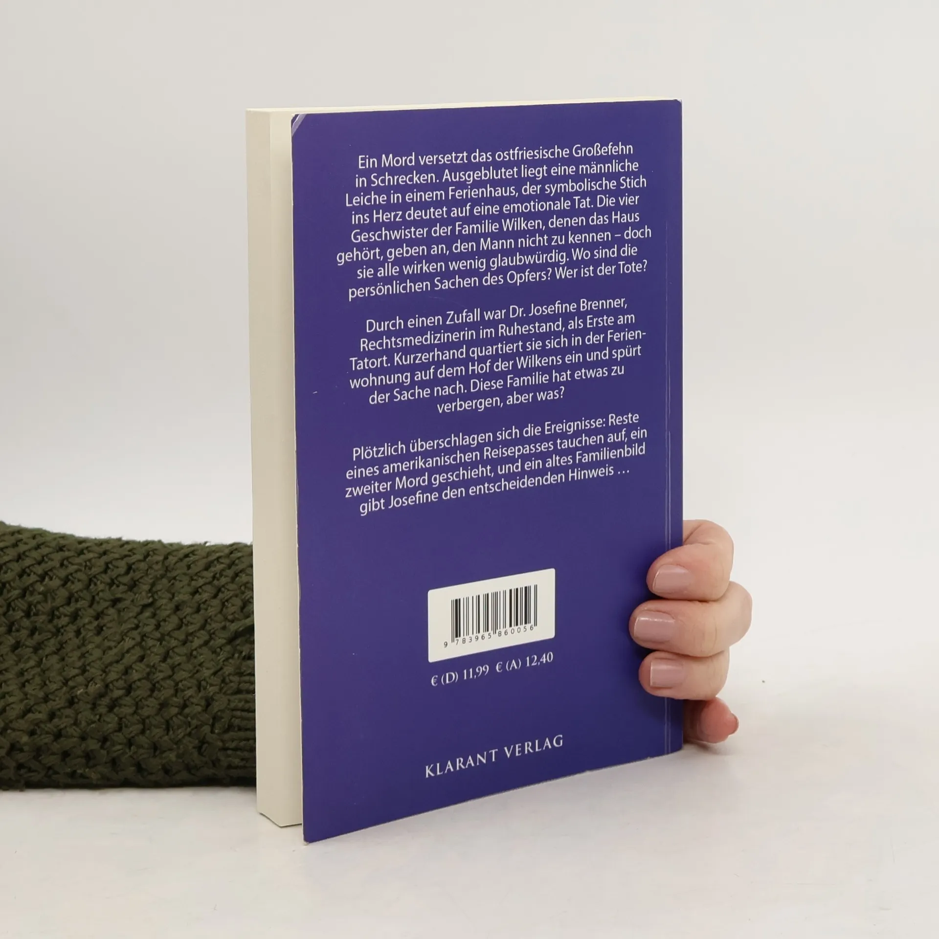 Ein Mord versetzt das ostfriesische Großefehn in Schrecken. Ausgeblutet liegt eine männliche Leiche in einem Ferienhaus, der symbolische Stich ins Herz deutet auf eine emotionale Tat. Die vier Geschwister der Familie Wilken, denen das Haus gehört, geben an, den Mann nicht zu kennen – doch sie alle wirken wenig glaubwürdig. Wo sind die persönlichen Sachen des Opfers? Wer ist der Tote? Durch einen Zufall war Dr. Josefine Brenner, Rechtsmedizinerin im Ruhestand, als Erste am Tatort. Kurzerhand quartiert sie sich in der Ferienwohnung auf dem Hof der Wilkens ein und spürt der Sache nach. Diese Familie hat etwas zu verbergen, aber was? Plötzlich überschlagen sich die Ereignisse: Reste eines amerikanischen Reisepasses tauchen auf, ein zweiter Mord geschieht, und ein altes Familienbild gibt Josefine den entscheidenden Hinweis …
