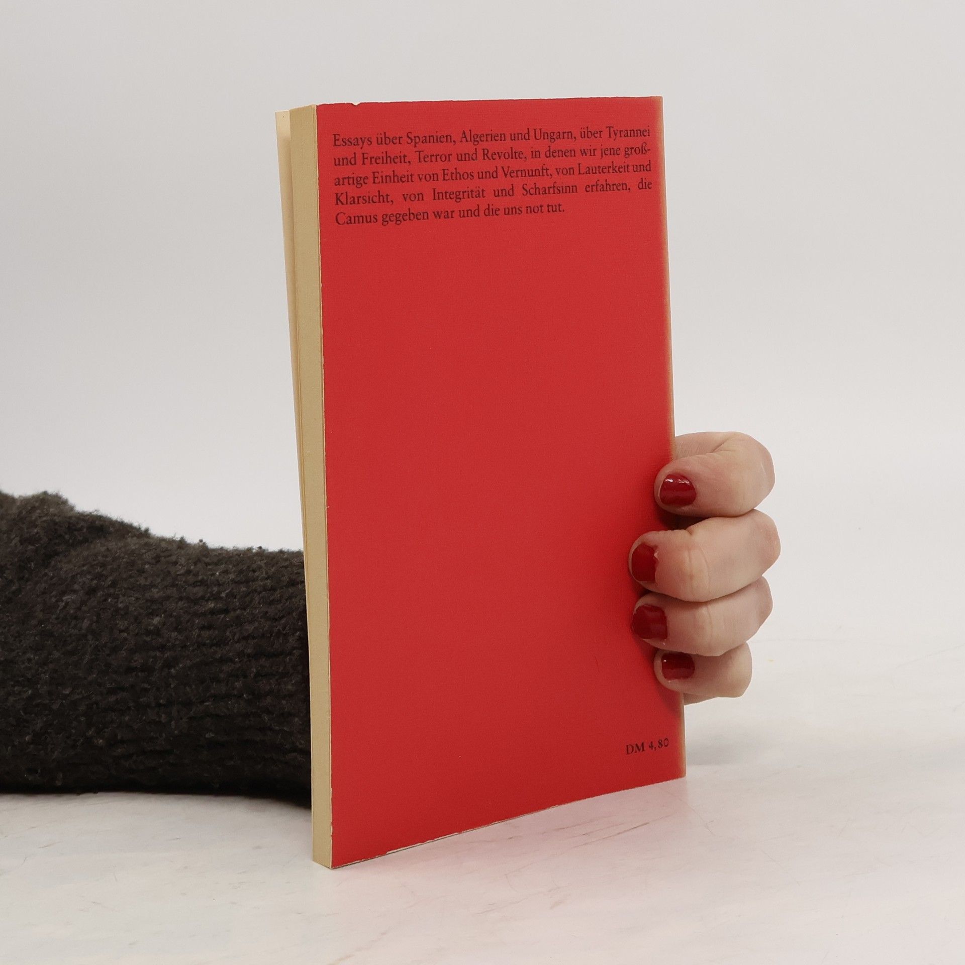 "Wenn wir die Rechtsbrüche und die vielfältigen Mißbräuche zusammenzählen, von denen heute die Rede war, können wir den Tag voraussehen, da sich in einem Konzentrationslager-Europa nur noch Gefängniswärter auf freiem Fuß befinden." Essays über Spanien, Algerien und Ungarn, über Tyrannei und Freiheit, Terror und Revolte, in denen wir jene großartige Einheit von Ethos und Vernunft, von Lauterkeit und Klarsicht, von Integrität und Scharfsinn erfahren, die Camus eigen war.