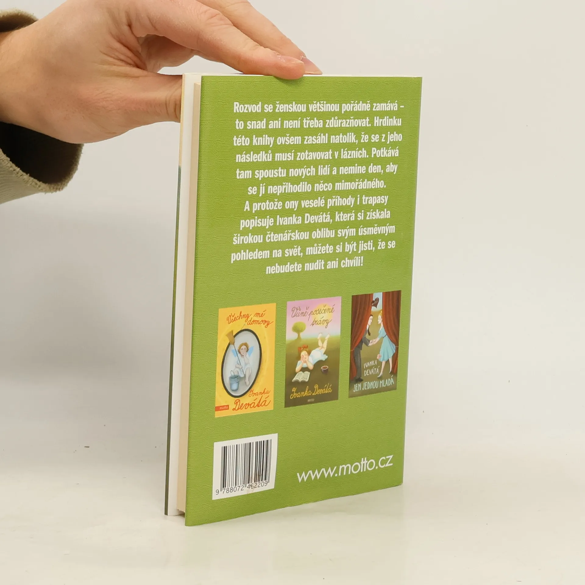 Rozvod se ženskou většinou pořádně zamává. Hrdinku této knihy ovšem zasáhl natolik, že se z jeho důsledků musí zotavovat v lázních. Potkává tam spoustu nových lidí a nemine den, aby se jí nepřihodilo něco mimořádného. A protože ony veselé příhody i trapasy popisuje Ivanka Devátá, která si získala širokou čtenářskou oblibu svým úsměvným pohledem na svět, můžete si být jisti, že se nebudete nudit ani chvíli.