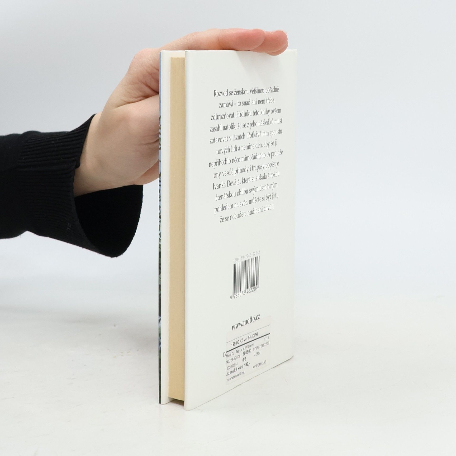 Rozvod se ženskou většinou pořádně zamává. Hrdinku této knihy ovšem zasáhl natolik, že se z jeho důsledků musí zotavovat v lázních. Potkává tam spoustu nových lidí a nemine den, aby se jí nepřihodilo něco mimořádného. A protože ony veselé příhody i trapasy popisuje Ivanka Devátá, která si získala širokou čtenářskou oblibu svým úsměvným pohledem na svět, můžete si být jisti, že se nebudete nudit ani chvíli.