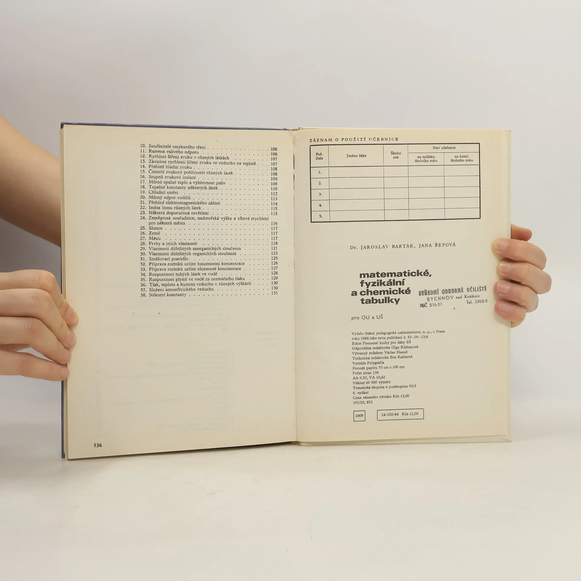 Matematické, fyzikální a chemické tabulky pro odborná učiliště a učňovské školy, Jana Řepová, Jaroslav Barták