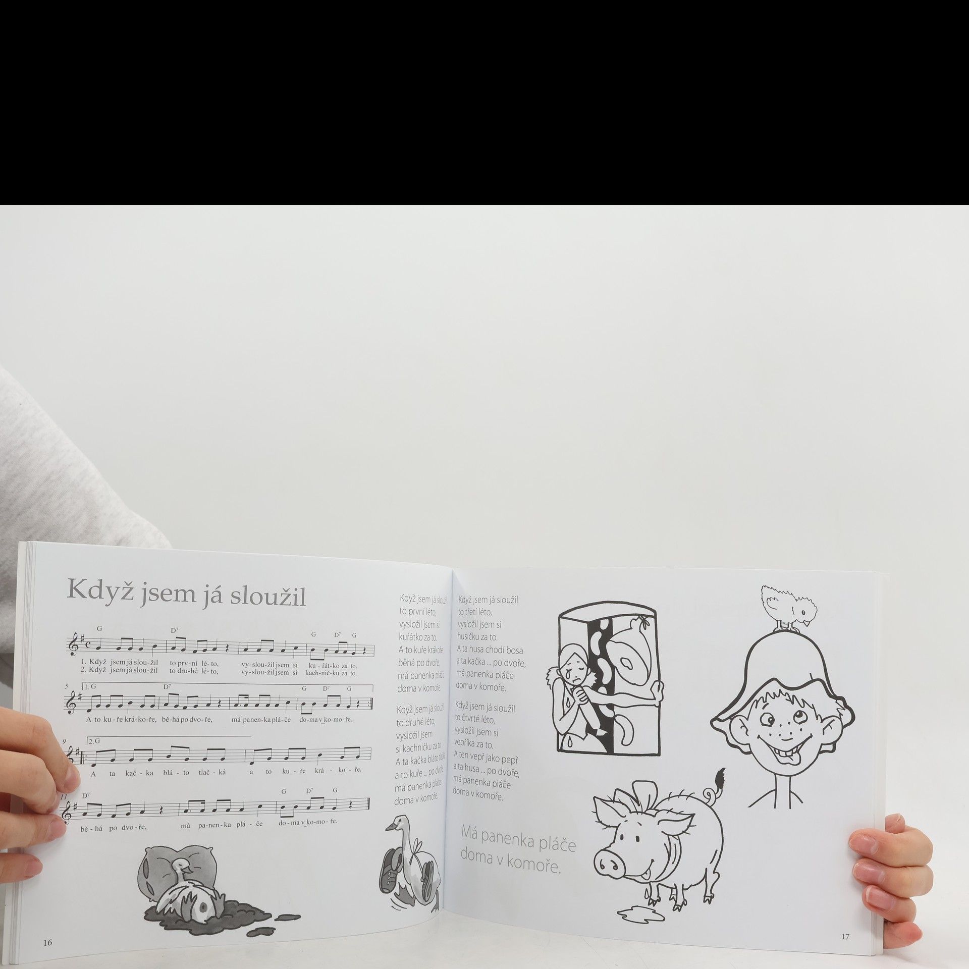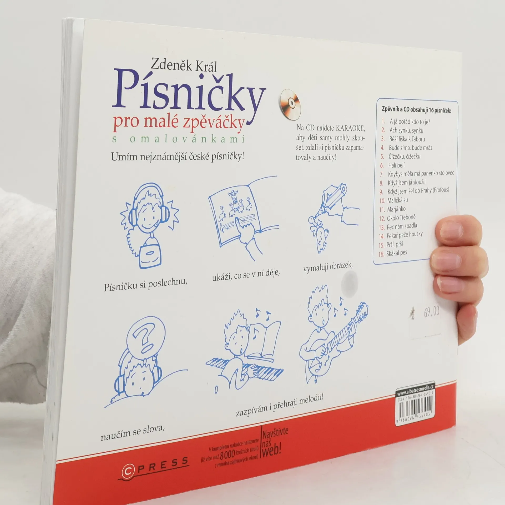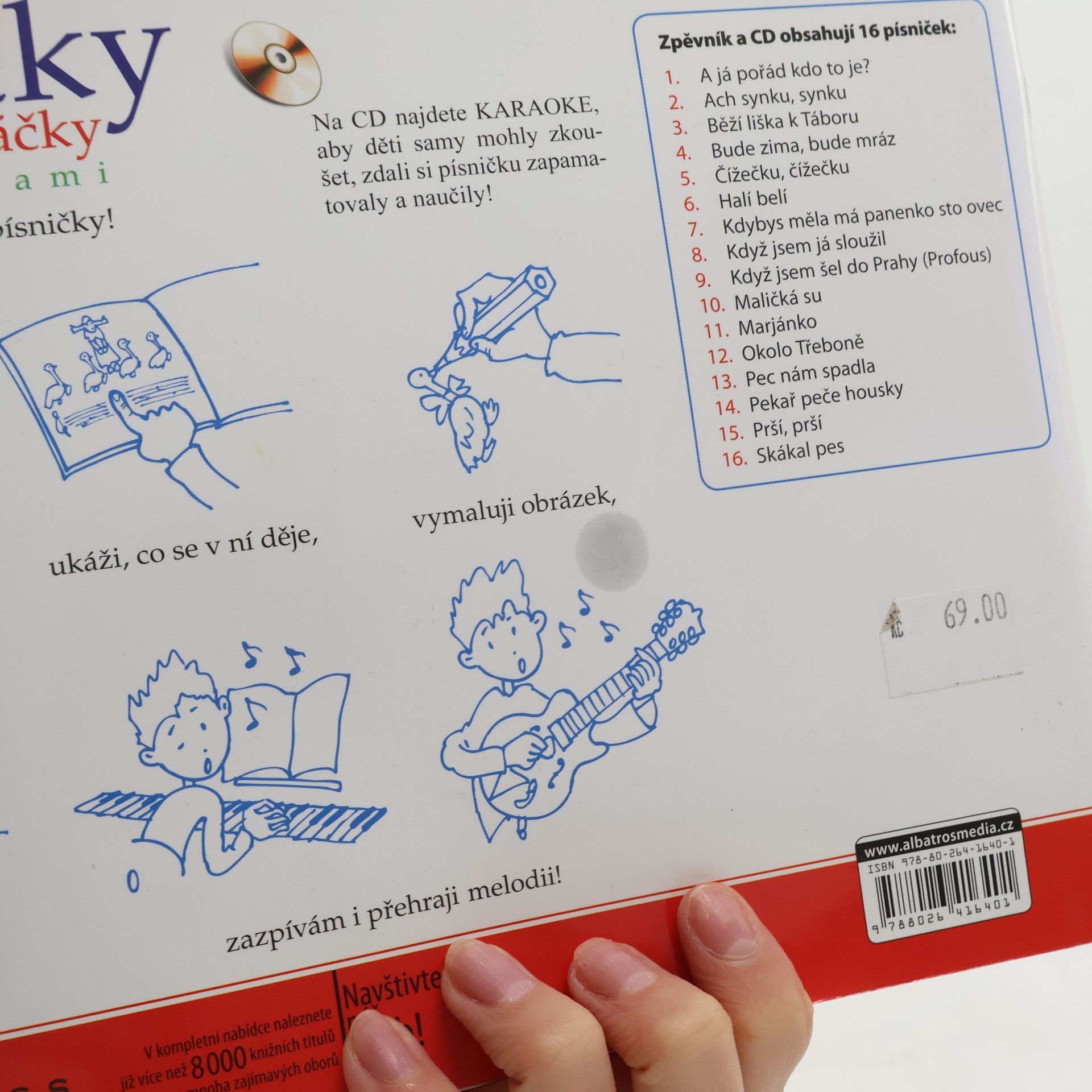 Obsahuje 16 známých písniček s texty a notací