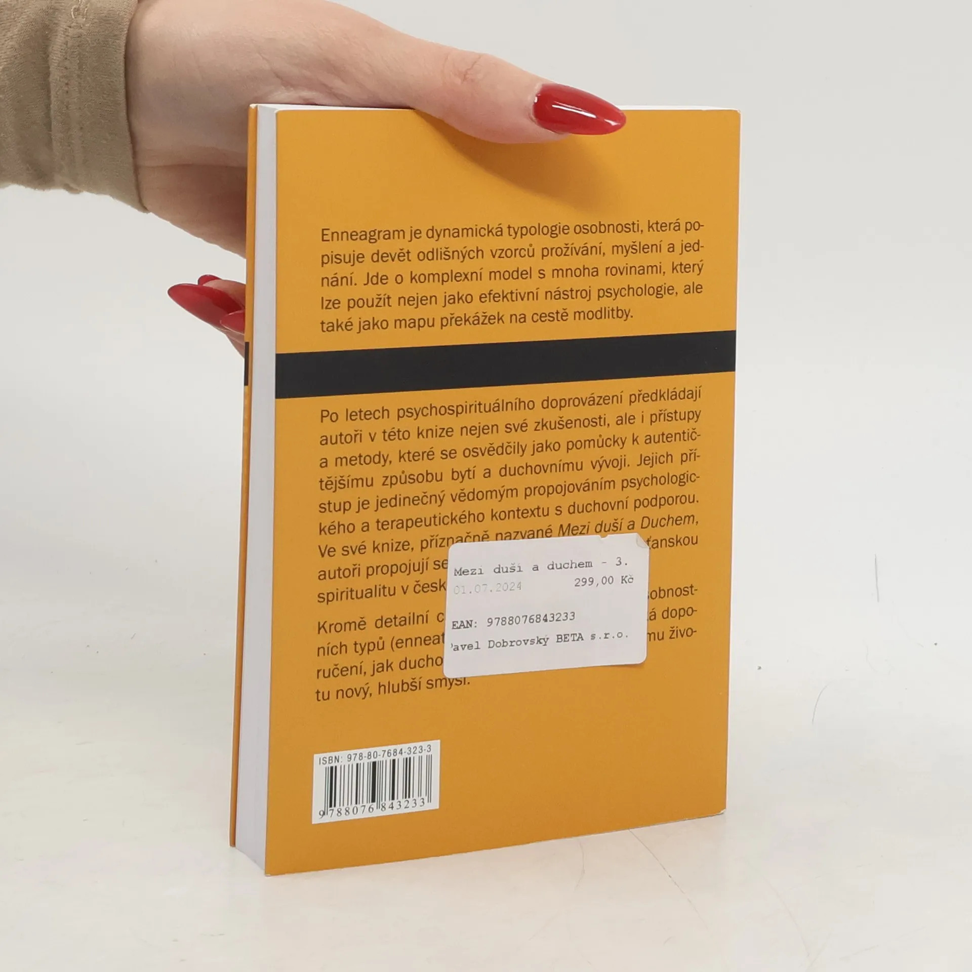 Enneagram je dynamická typologie osobnosti, která popisuje devět odlišných vzorců prožívání, myšlení a jednání. Jde o komplexní model s mnoha rovinami, který lze použít nejen jako efektivní nástroj psychologie, ale také jako mapu překážek na cestě modlitby. Po letech psychospirituálního doprovázení předkládají autoři v této knize nejen své zkušenosti, ale i přístupy a metody, které se osvědčily jako pomůcky k autentičtějšímu způsobu bytí a duchovnímu vývoji. Jejich přístup je jedinečný vědomým propojováním psychologického a terapeutického kontextu s duchovní podporou. Ve své knize, příznačně nazvané Mezi duší a Duchem , autoři propojují sebepoznání a současnou křesťanskou spiritualitu v českém prostředí. Kromě detailní charakteristiky jednotlivých osobnostních typů (enneatypů) kniha nabízí též praktická doporučení, jak duchovně a lidsky růst a dát vlastnímu životu nový, hlubší smysl.