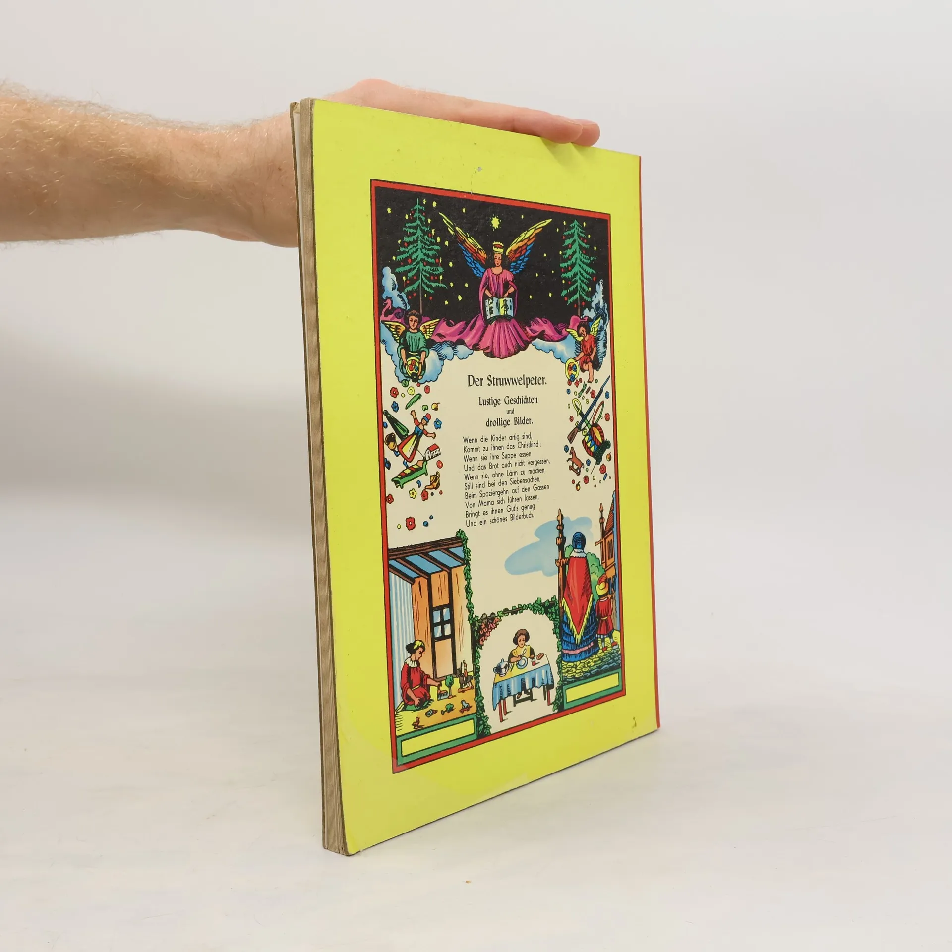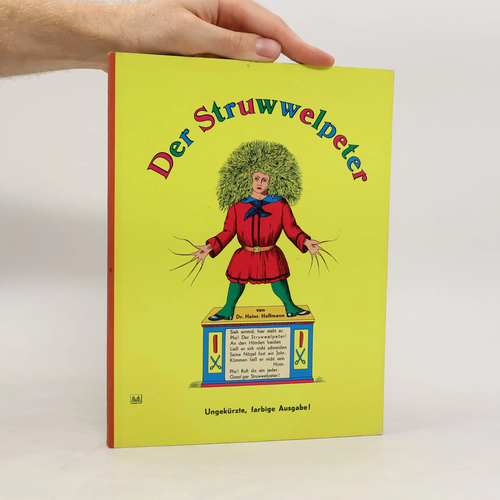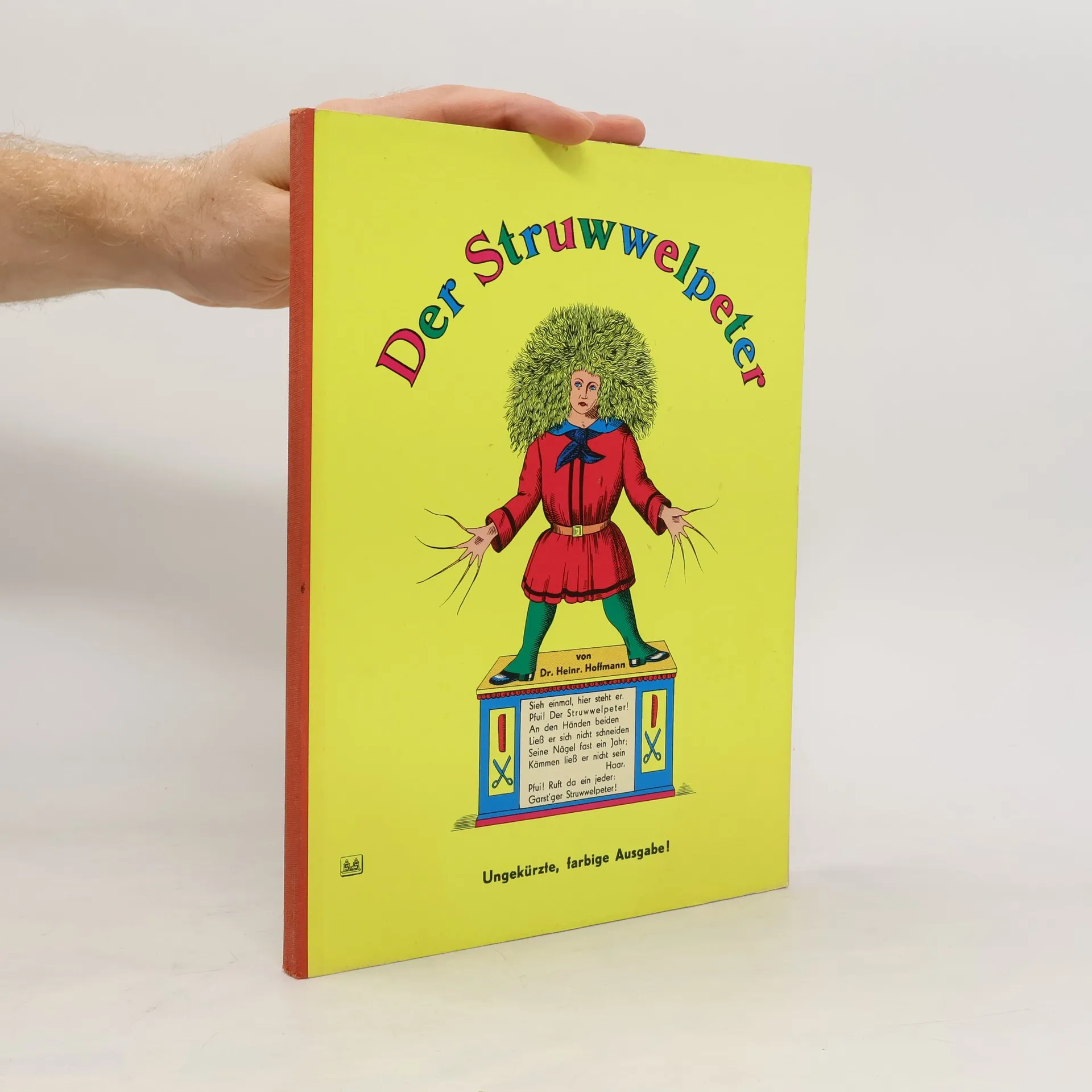 Der Struwwelpeter Wenn die Kinder artig sind, kommt zu ihnen das Christkind wenn sie ihre Suppe essen und das Brot auch nicht vergessen, wenn sie, ohne Lärm zu machen, still sind bei den Siebensachen, beim Spazierngehn auf den Gassen von Mama sich führen lassen, bringt es ihnen Gut´s genug und ein schönes Bilderbuch. Weihnachten 1844 schenkte der Frankfurter Arzt Heinrich Hoffmann seinem dreijährigen Sohn Carl ein selbstgemachtes Bilderbuch: den „Struwwelpeter“. Alle, die es sahen, ermunterten ihn, es drucken zu lassen und so wurde aus dem persönlichen Geschenk des Vaters an seinen Sohn ein betextetes Bilderbuch, das noch heute in jedem Kinderzimmer seinen Platz findet. Manch ein Vers ist sogar zum geflügelten Wort geworden: Nein, meine Suppe ess ich nicht. • Stabile Pappe • abgerundete Ecke • Ungekürzte Ausgabe