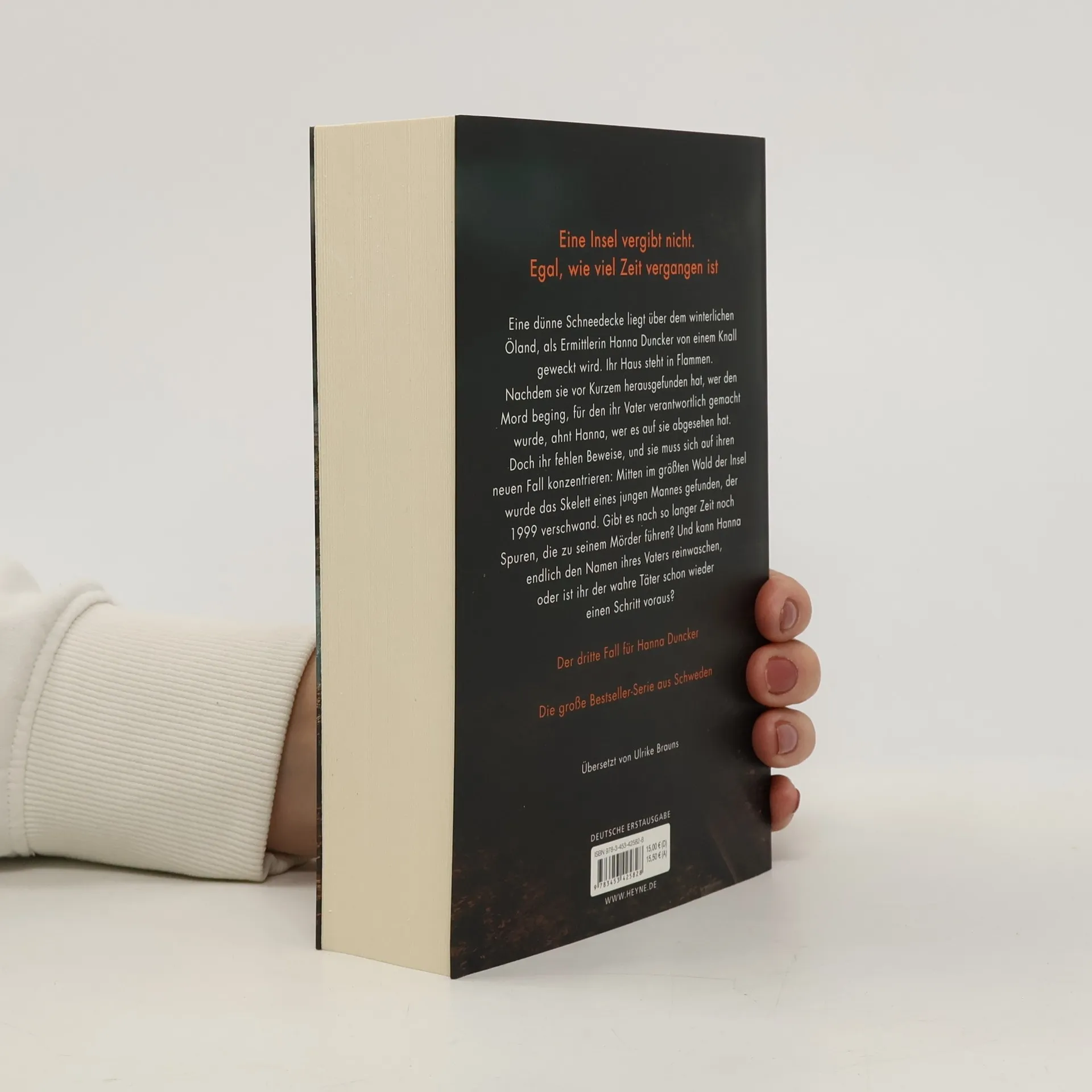 Eine Insel vergibt nicht. Egal, wie viel Zeit vergangen ist Eine Schneedecke liegt über dem winterlichen Öland, als Ermittlerin Hanna Duncker von einem Knall geweckt wird. Ihr Haus steht in Flammen. Nachdem sie vor Kurzem herausgefunden hat, wer den Mord beging, für den ihr Vater verantwortlich gemacht wurde, ahnt Hanna, wer es auf sie abgesehen hat. Doch ihr fehlen Beweise, und sie muss sich auf ihren neuen Fall konzentrieren: Mitten im größten Wald der Insel wurde das Skelett eines jungen Mannes gefunden, der 1999 verschwand. Gibt es nach so langer Zeit noch Spuren, die zu seinem Mörder führen? Und kann Hanna endlich den Namen ihres Vaters reinwaschen, oder ist ihr der wahre Täter schon wieder einen Schritt voraus? Die Hanna-Duncker-Reihe geht weiter! Im Februar 2024 erscheint Band 4: Nebelstunde