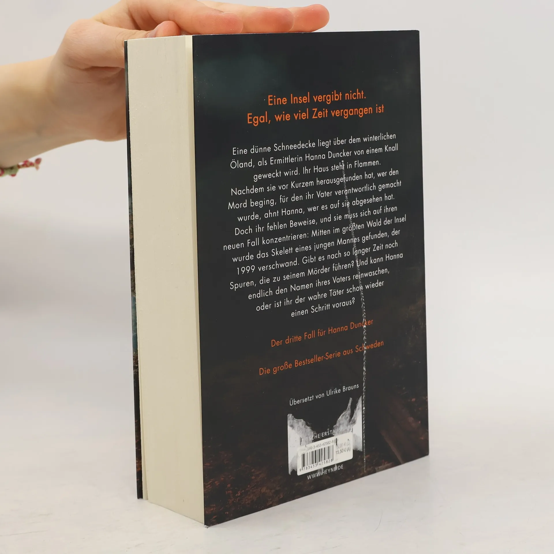 Eine Insel vergibt nicht. Egal, wie viel Zeit vergangen ist Eine Schneedecke liegt über dem winterlichen Öland, als Ermittlerin Hanna Duncker von einem Knall geweckt wird. Ihr Haus steht in Flammen. Nachdem sie vor Kurzem herausgefunden hat, wer den Mord beging, für den ihr Vater verantwortlich gemacht wurde, ahnt Hanna, wer es auf sie abgesehen hat. Doch ihr fehlen Beweise, und sie muss sich auf ihren neuen Fall konzentrieren: Mitten im größten Wald der Insel wurde das Skelett eines jungen Mannes gefunden, der 1999 verschwand. Gibt es nach so langer Zeit noch Spuren, die zu seinem Mörder führen? Und kann Hanna endlich den Namen ihres Vaters reinwaschen, oder ist ihr der wahre Täter schon wieder einen Schritt voraus? Die Hanna-Duncker-Reihe geht weiter! Im Februar 2024 erscheint Band 4: Nebelstunde