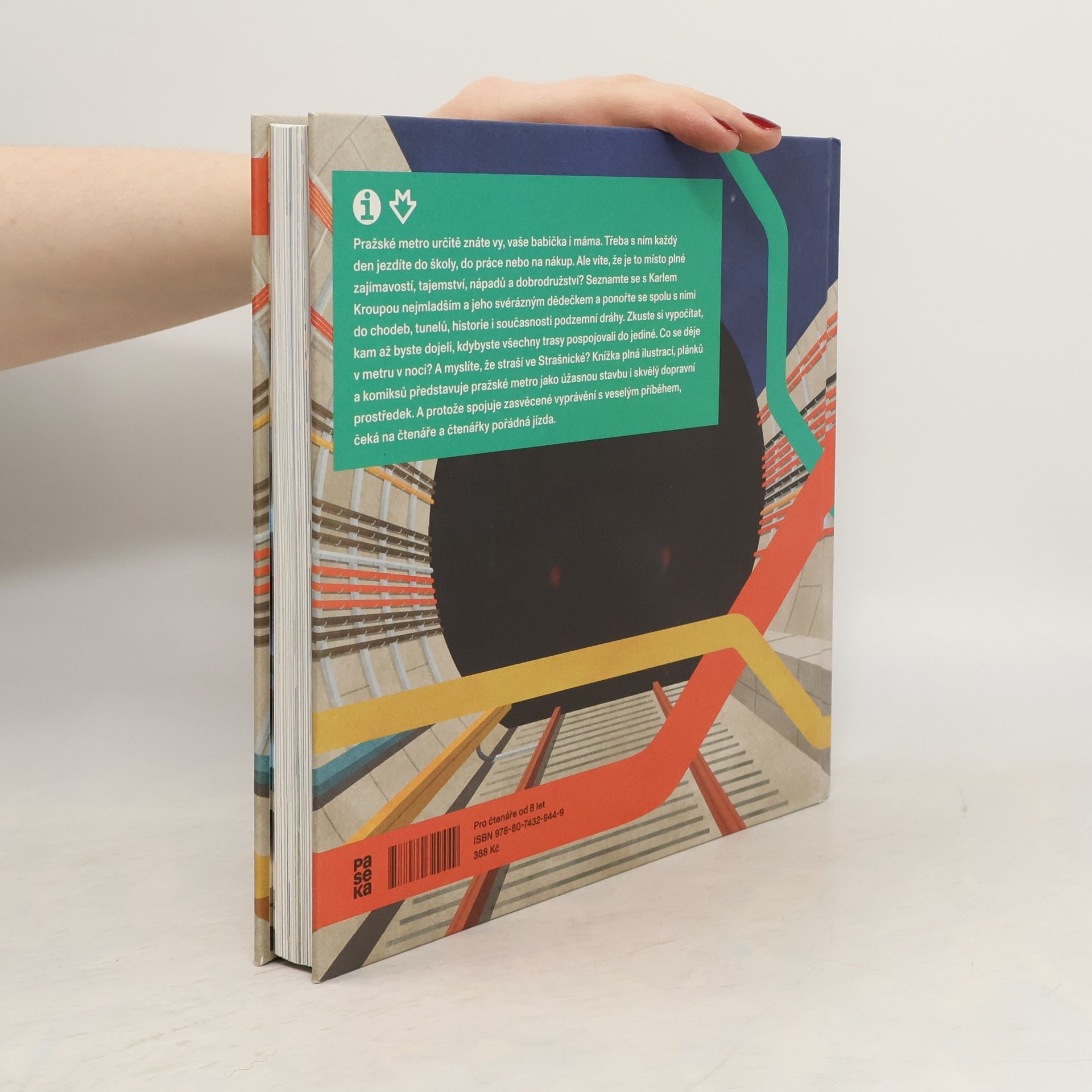 Pražské metro určitě znáte vy, vaše babička i máma. Třeba s ním každý den jezdíte do školy, do práce nebo na nákup. Ale víte, že je to místo plné zajímavostí, tajemství, nápadů a dobrodružství? Seznamte se s Karlem Kroupou nejmladším a jeho svérázným dědečkem a ponořte se spolu s nimi do chodeb, tunelů, historie i současnosti podzemní dráhy. Poznejte, jak se metro budovalo, i zvláštnosti jednotlivých stanic. Zkuste si vypočítat, kam až byste dojeli, kdybyste všechny trasy pospojovali do jediné. Co se děje v metru v noci? Jak zasáhla metro tisíciletá povodeň? A straší ve Strašnické? Knížka plná ilustrací, plánků a komiksů představuje pražské metro jako úžasnou stavbu i skvělý dopravní prostředek. A protože spojuje populární výklad s veselým příběhem, čeká na čtenáře a čtenářky pořádná jízda. Tak ukončete výstup a nástup, roztodivná kniha o metru se právě otevírá.