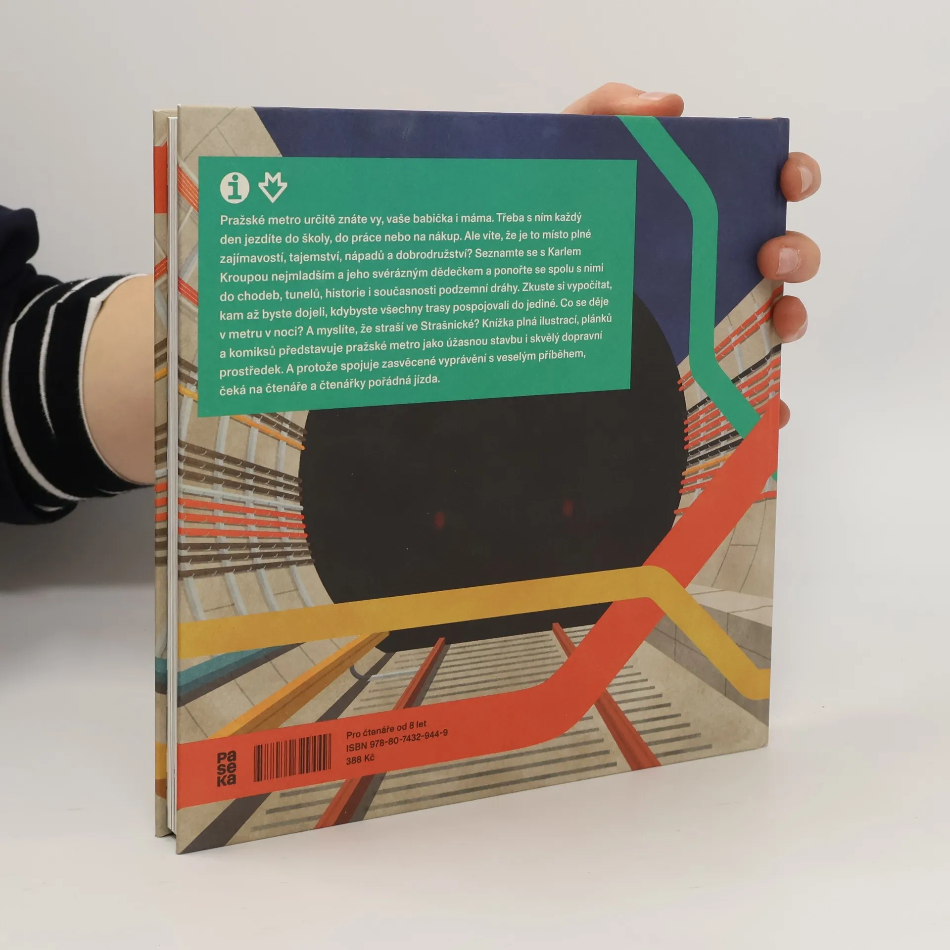 Pražské metro určitě znáte vy, vaše babička i máma. Třeba s ním každý den jezdíte do školy, do práce nebo na nákup. Ale víte, že je to místo plné zajímavostí, tajemství, nápadů a dobrodružství? Seznamte se s Karlem Kroupou nejmladším a jeho svérázným dědečkem a ponořte se spolu s nimi do chodeb, tunelů, historie i současnosti podzemní dráhy. Poznejte, jak se metro budovalo, i zvláštnosti jednotlivých stanic. Zkuste si vypočítat, kam až byste dojeli, kdybyste všechny trasy pospojovali do jediné. Co se děje v metru v noci? Jak zasáhla metro tisíciletá povodeň? A straší ve Strašnické? Knížka plná ilustrací, plánků a komiksů představuje pražské metro jako úžasnou stavbu i skvělý dopravní prostředek. A protože spojuje populární výklad s veselým příběhem, čeká na čtenáře a čtenářky pořádná jízda. Tak ukončete výstup a nástup, roztodivná kniha o metru se právě otevírá.