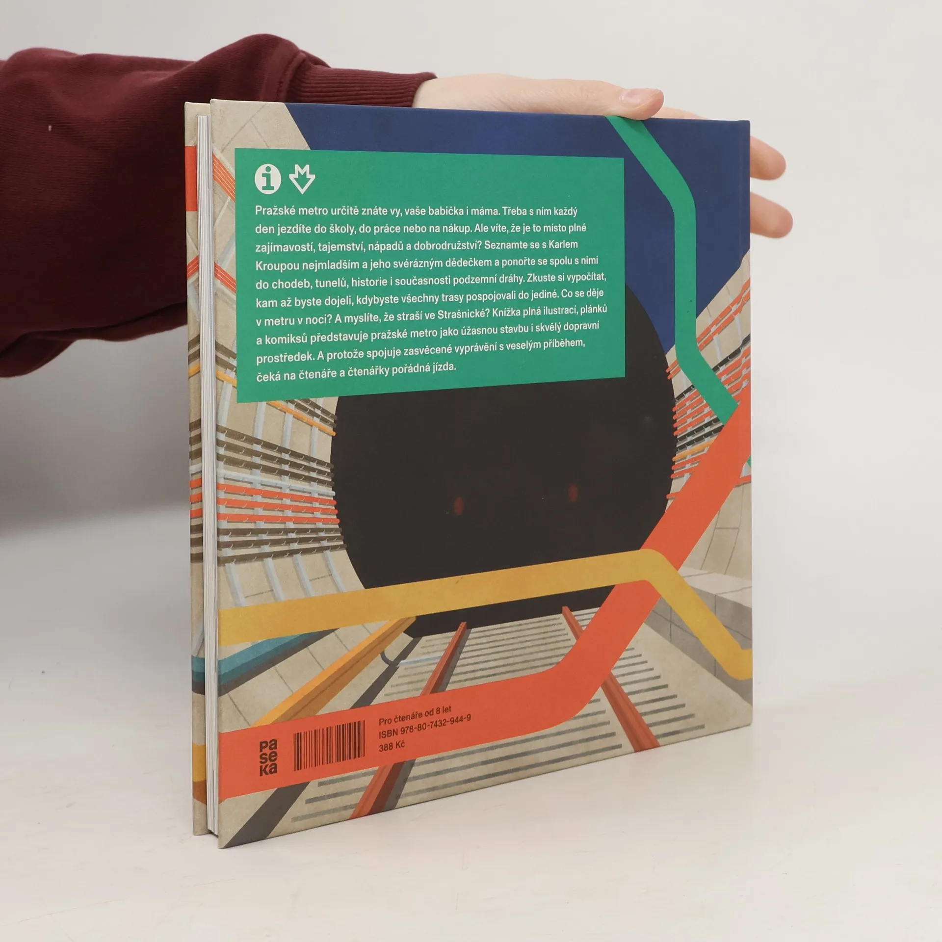 Pražské metro určitě znáte vy, vaše babička i máma. Třeba s ním každý den jezdíte do školy, do práce nebo na nákup. Ale víte, že je to místo plné zajímavostí, tajemství, nápadů a dobrodružství? Seznamte se s Karlem Kroupou nejmladším a jeho svérázným dědečkem a ponořte se spolu s nimi do chodeb, tunelů, historie i současnosti podzemní dráhy. Poznejte, jak se metro budovalo, i zvláštnosti jednotlivých stanic. Zkuste si vypočítat, kam až byste dojeli, kdybyste všechny trasy pospojovali do jediné. Co se děje v metru v noci? Jak zasáhla metro tisíciletá povodeň? A straší ve Strašnické? Knížka plná ilustrací, plánků a komiksů představuje pražské metro jako úžasnou stavbu i skvělý dopravní prostředek. A protože spojuje populární výklad s veselým příběhem, čeká na čtenáře a čtenářky pořádná jízda. Tak ukončete výstup a nástup, roztodivná kniha o metru se právě otevírá.