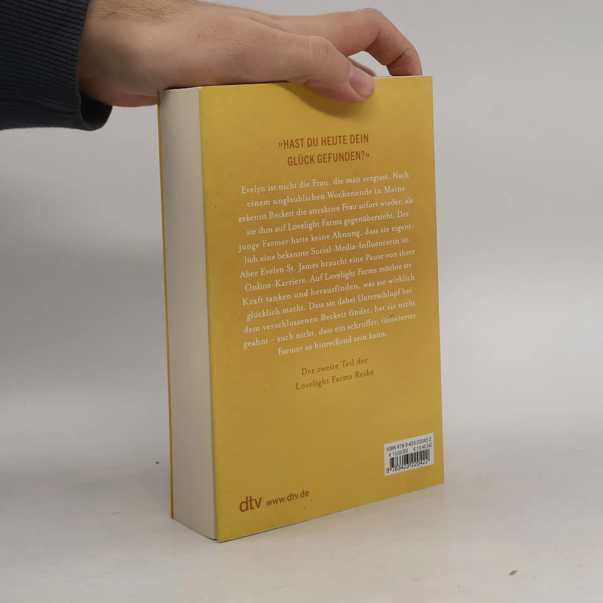 Meet me in Spring – Wo das Glück zu Hause ist Evelyn ist nicht die Frau, die man vergisst. Nach einem unglaublichen Wochenende in Maine erkennt Beckett die attraktive Frau sofort wieder, als sie ihm auf Lovelight Farms gegenübersteht. Der junge Farmer hatte keine Ahnung, dass sie eigentlich eine bekannte Social-Media-Influencerin ist. Aber Evelyn St. James braucht eine Pause von ihrer Online-Karriere. Auf Lovelight Farms möchte sie Kraft tanken und herausfinden, was sie wirklich glücklich macht. Dass sie dabei Unterschlupf bei dem verschlossenen Beckett findet, hat sie nicht geahnt –auch nicht, dass ein schroffer, tätowierter Farmer so hinreißend sein kann. Zum Mitfühlen, Schwärmen und Genießen: LOVELIGHT FARMS zeigt, dass man an Wünschen festhalten darf. »Borisons Worte haben eine besondere Magie« Elena Armas »Die aufregendste neue Romance-Autorin« Hannah Grace Der zweite Band der Lovelight-Farms-Reihe von B.K. Borison. Alle Bände der Reihe bei dtv: Lovelight Farms – Lichterglanz (Band 1) Lovelight Farms – Blütenzauber (Band 2) Lovelight Farms – Sommerleuchten (Band 3) Lovelight Farms – Herbstrauschen (Band 4) Alle Bände können unabhängig voneinander gelesen werden.