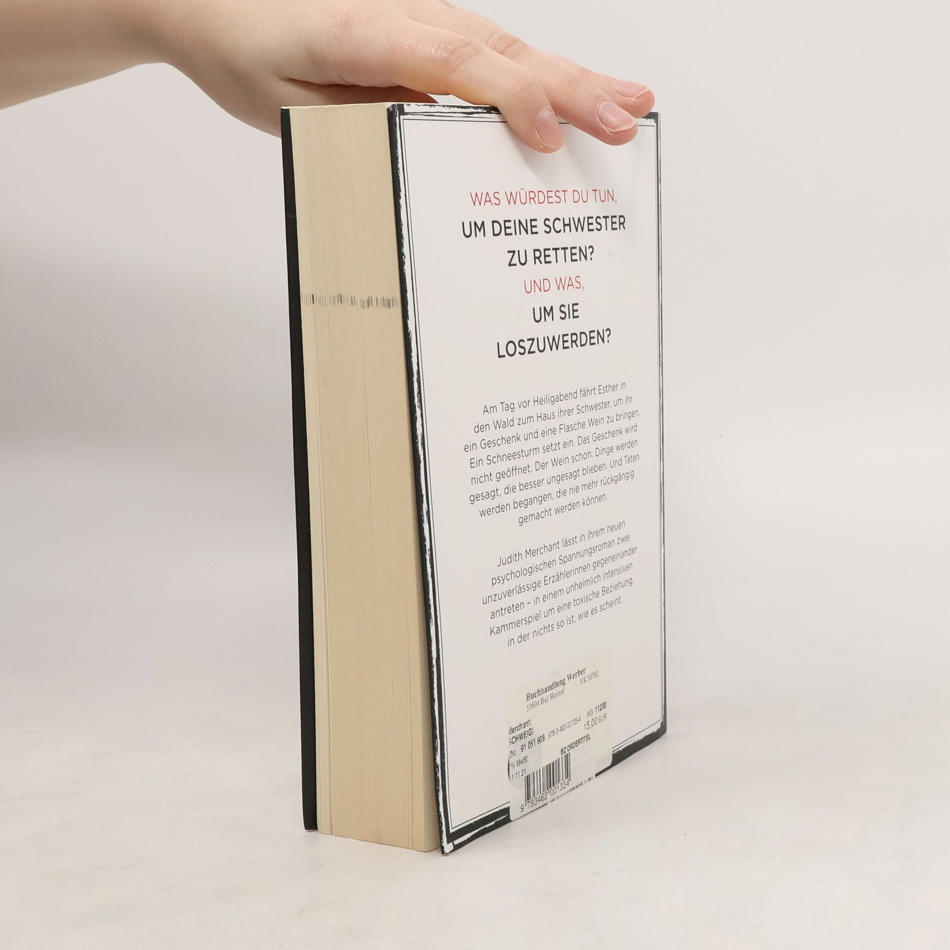 Was würdest du tun, um deine Schwester zu retten? Und was, um sie loszuwerden? Am Tag vor Heiligabend fährt Esther in den Wald zum Haus ihrer Schwester, um ihr ein Geschenk und eine Flasche Wein zu bringen. Ein Schneesturm setzt ein. Das Geschenk bleibt ungeöffnet, der Wein jedoch nicht. Unausgesprochene Dinge werden gesagt, und Taten geschehen, die nicht rückgängig gemacht werden können. Esther sollte eigentlich das Weihnachtsfest mit ihrem Ehemann und den Kindern in der Stadt vorbereiten, doch ihre Schwester Sue, die nach ihrer Scheidung allein in einem großen Haus im Wald lebt, lässt sie nicht los. Sie fährt los, um nach Sue zu sehen und sicherzustellen, dass sie ihre Tabletten nimmt. Eine Einladung in die Stadt kann sie nicht aussprechen, aus Angst, dass Sue erneut durchdreht, wie im letzten Jahr. Am Haus angekommen, merkt Esther, dass Sue sie loswerden will. Was verbirgt sie? Der Schneesturm wird stärker und zum ersten Mal seit ihrer Kindheit sprechen die Schwestern offen miteinander – bis eine von ihnen zum Messer greift. Während der Schnee alles verdeckt und die Geräusche erstickt, entfaltet sich ein intensives Kammerspiel um eine toxische Beziehung, in der nichts so ist, wie es scheint.