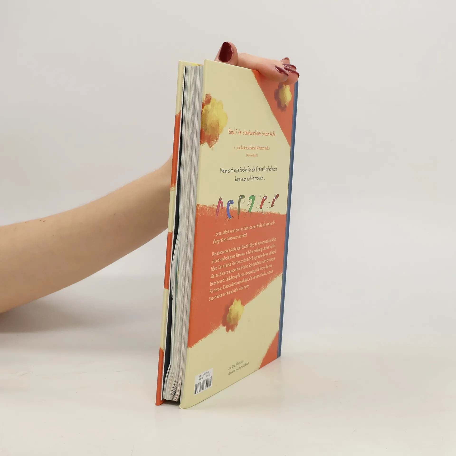 Selbst wenn man so klein ist wie eine Socke, kann man die allergrößten Abenteuer erleben! Die himbeerrote Socke fliegt als Astronautin ins Weltall, wo sie einen Planeten entdeckt, auf dem dreiohrige Außerirdische leben. Die einfallsreiche blaue Socke hilft einer berühmten Autorin beim Bücherschreiben, während die rosa Blümchensocke zur liebsten Spielgefährtin eines traurigen Hundes wird. Und dann gibt es da noch die gelbe Socke, die eine Karriere als Käsemacherin einschlägt, die weiße Socke, die einen Job als Gespenst annimmt, und viele, viele mehr. Band 2 der Socken -Reihe