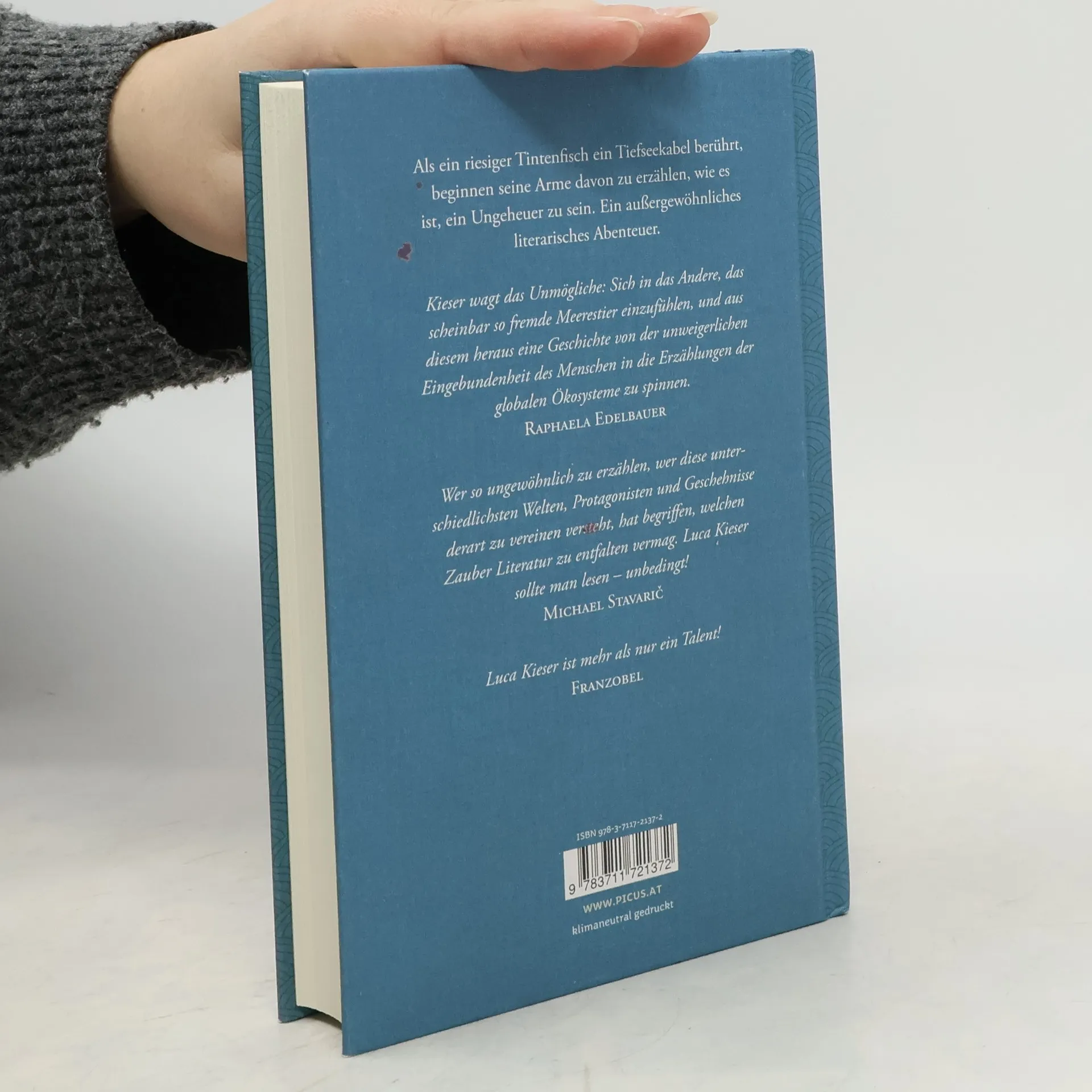 Alles dreht sich um einen monströsen Tintenfisch. Einen Riesenkalmar. Als dieser ein Tiefseekabel berührt, beginnen seine Arme und Tentakel zu erzählen. Davon, wie es ist, in ständiger Dunkelheit zu leben, wie es ist, für den Menschen ein Ungeheuer zu sein. Sie erzählen von Sanja, die ein Praktikum auf einem Frosttrawler absolviert und sich um einen gefangenen Kalmar kümmert. Sie erzählen von Dagmar, die für einen Geheimdienst in der Antarktis stationiert ist und diesen Kalmar unbemerkt nach Deutschland schaffen soll. Sie erzählen von einer Kindheit als Schäferstochter. Sie erzählen von einer Familie, deren Urahn schon mit einem Kalmar gekämpft hat. Sie erzählen von dem jungen Jules Verne, der von diesem Kampf hört und darüber zu schreiben beginnt. Am Ende erzählen sie davon, wie schwierig es für Menschen ist, von Tieren zu erzählen, und warum sie es dennoch tun.