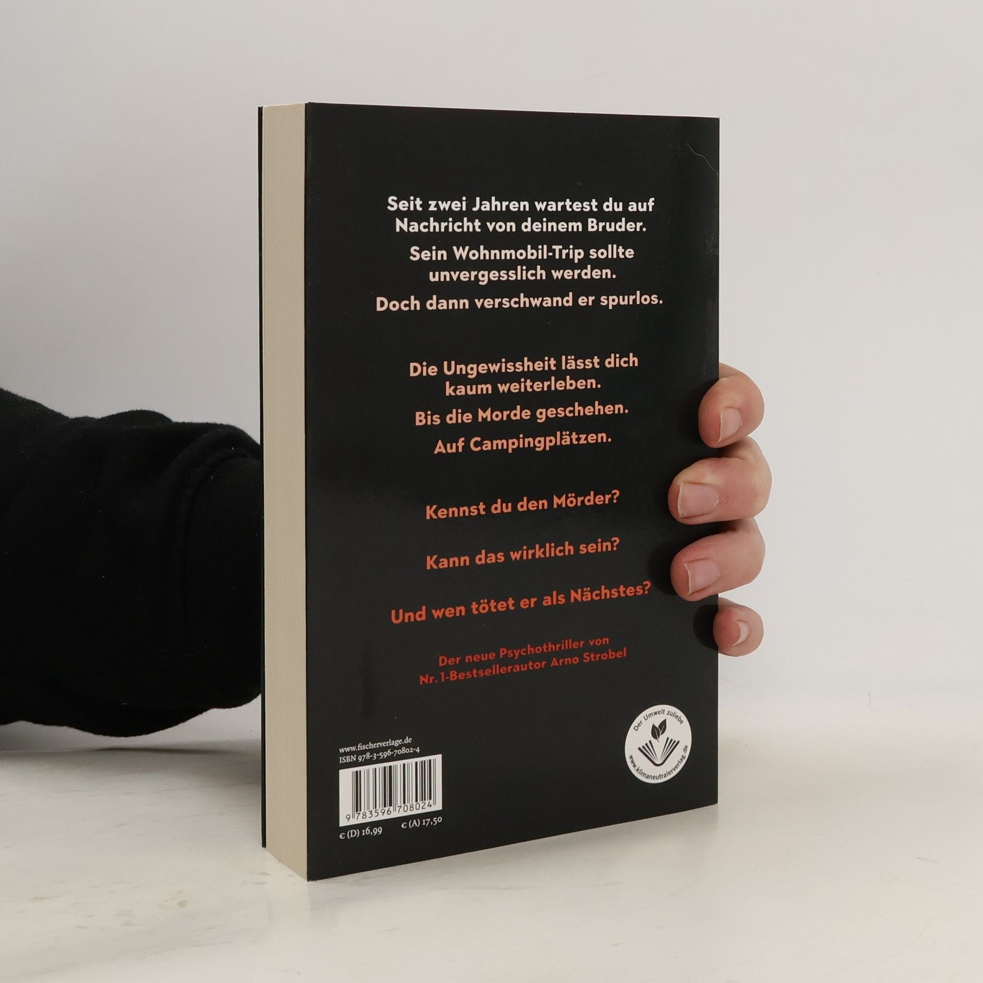 Seit zwei Jahren wartest du auf ein Lebenszeichen von deinem Bruder. Sein Wohnmobil-Trip sollte unvergesslich werden. Aber seither keine Spur von ihm. Bis die Morde geschehen … Der neue Psycho-Thriller von Nr.1-Bestseller-Autor Arno Strobel Evelyn Jancke ist nur noch ein Schatten ihrer selbst, seit ihr Bruder Fabian zwei Jahre zuvor auf einem Wohnmobil-Trip spurlos verschwand. Es gibt kein Lebenszeichen von ihm, die Ermittlungen wurden eingestellt. Allein ihre Arbeit als forensische Psychologin hält Evelyn aufrecht, vor allem, als die Oldenburger Polizei um ihre Mithilfe bei einer Mordserie bittet. Im norddeutschen Raum tötet ein Unbekannter scheinbar wahllos Menschen auf Campingplätzen. Er kommt immer nachts und verschwindet unerkannt wieder. Bis es einen Zeugen gibt. Und daraufhin ein Phantombild. Evelyn traut ihren Augen nicht, als sie es sieht. Und fasst einen verzweifelten Entschluss, der sie alles kosten könnte …