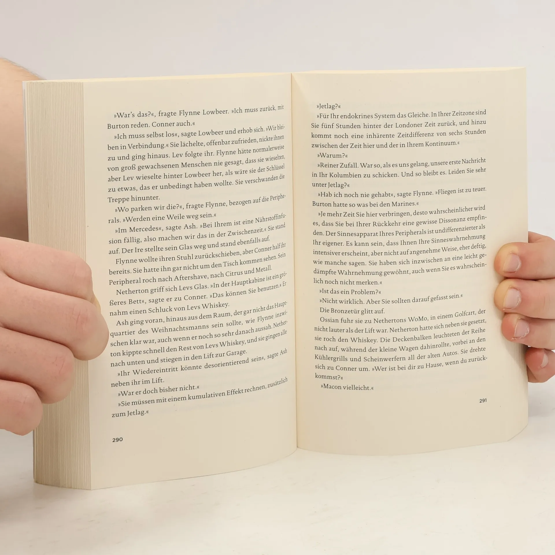 Flynne und Wilf leben in unterschiedlichen Zeiten, getrennt durch die Apokalypse des 21. Jahrhunderts. Flynne verdient ihr Geld in einem 3D-Kopierladen an der amerikanischen Ostküste und lebt mit ihrem Bruder Burton, der heimlich Computerspiele testet. Als Burton Flynne bittet, für ihn einzuspringen, findet sie sich in einer düsteren, virtuellen Welt wieder, die die Zukunft darstellt. Dort wird Wilf, ein PR-Mann, mit einem Mord konfrontiert, dessen einzige Zeugin Flynne ist. Über ein Peripher-Gerät kontaktiert Wilf Flynne, was ihre Realität für immer verändert. Während Flynne in die Geschehnisse verwickelt wird, erkennt Wilf, dass die Vergangenheit einen langen Schatten wirft und die Zukunft ernsthafte Konsequenzen hat. Die Geschichte entfaltet sich als fesselnder Thriller, der sowohl sozialpsychologische als auch futuristische Elemente vereint. Kritiker loben die inspirierende Erzählweise und Gibsons Fähigkeit, die Zukunft als ästhetisches Kunstwerk darzustellen. Der Roman bietet nicht nur spannende Unterhaltung, sondern reflektiert auch tiefere Wahrheiten über die Gegenwart.