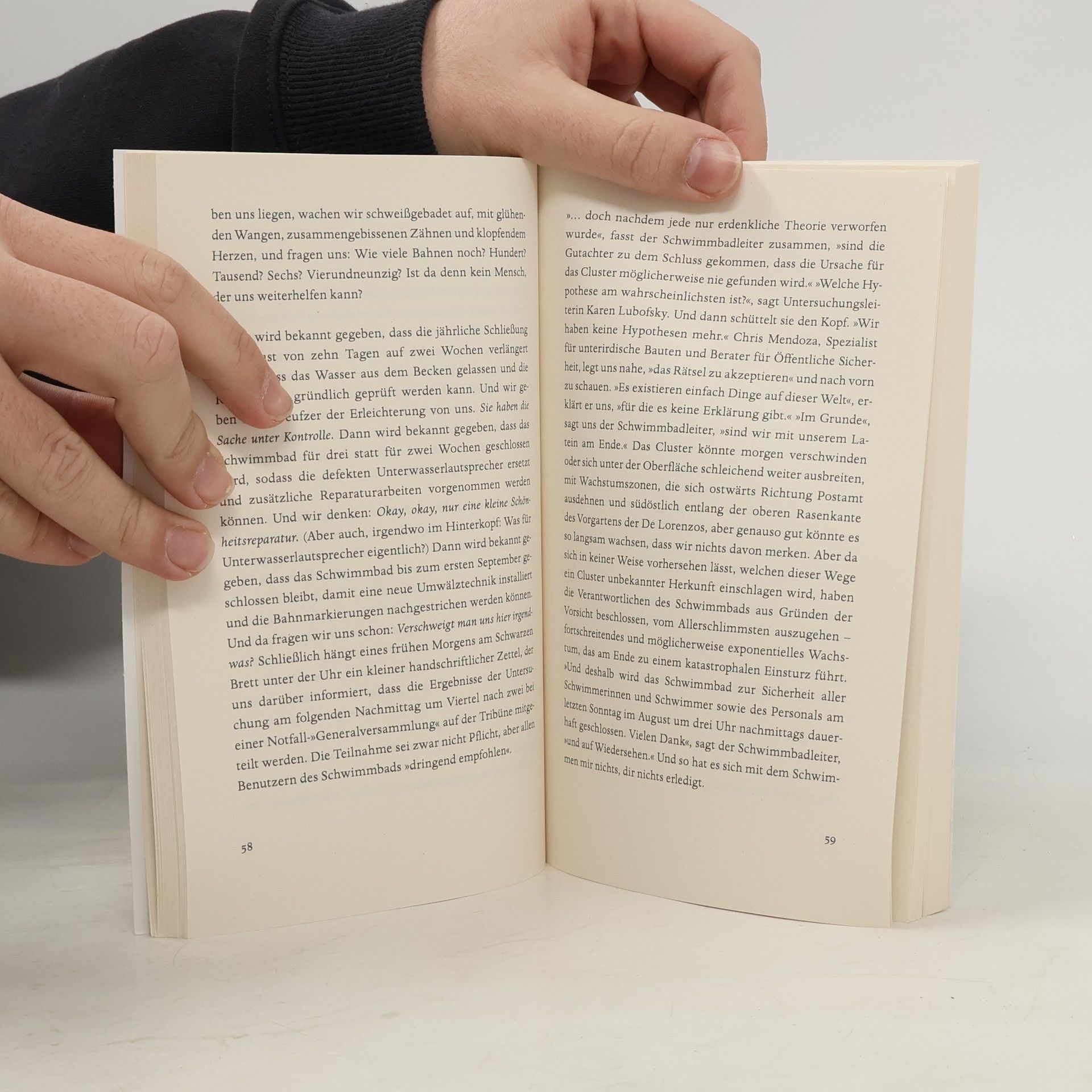 In ihrem Schwimmbad fühlen sie sich zu Hause, hier können sie bei ihren täglichen Bahnen ihre Sorgen hinter sich lassen: Designer, Nonnen, Hundesitter, Veganerinnen, Polizisten, Professorinnen, Schauspieler... Bis eines Tages ein Riss erscheint – am Beckengrund, aber auch im Gedächtnis von Alice, die genau wie die anderen hier im Schwimmen stets Trost und Halt gefunden hat. Während sie bald nur noch in bruchstückhaften Erinnerungen schwimmt, versucht ihre Tochter, sich in ihre Mutter hineinzuversetzen, ihr Verhältnis zueinander neu auszuloten und Alice’ Leben Sinn und Zusammenhang zurückzugeben. Aus so unterschiedlichen wie verblüffenden Perspektiven und mit unvergleichlichem Gespür für das Komische im Tragischen schreibt Julie Otsuka über Liebe und Verlust, Trauer und Erinnerung, Mütter und Töchter und die große Frage, was wir unseren Eltern schuldig sind.